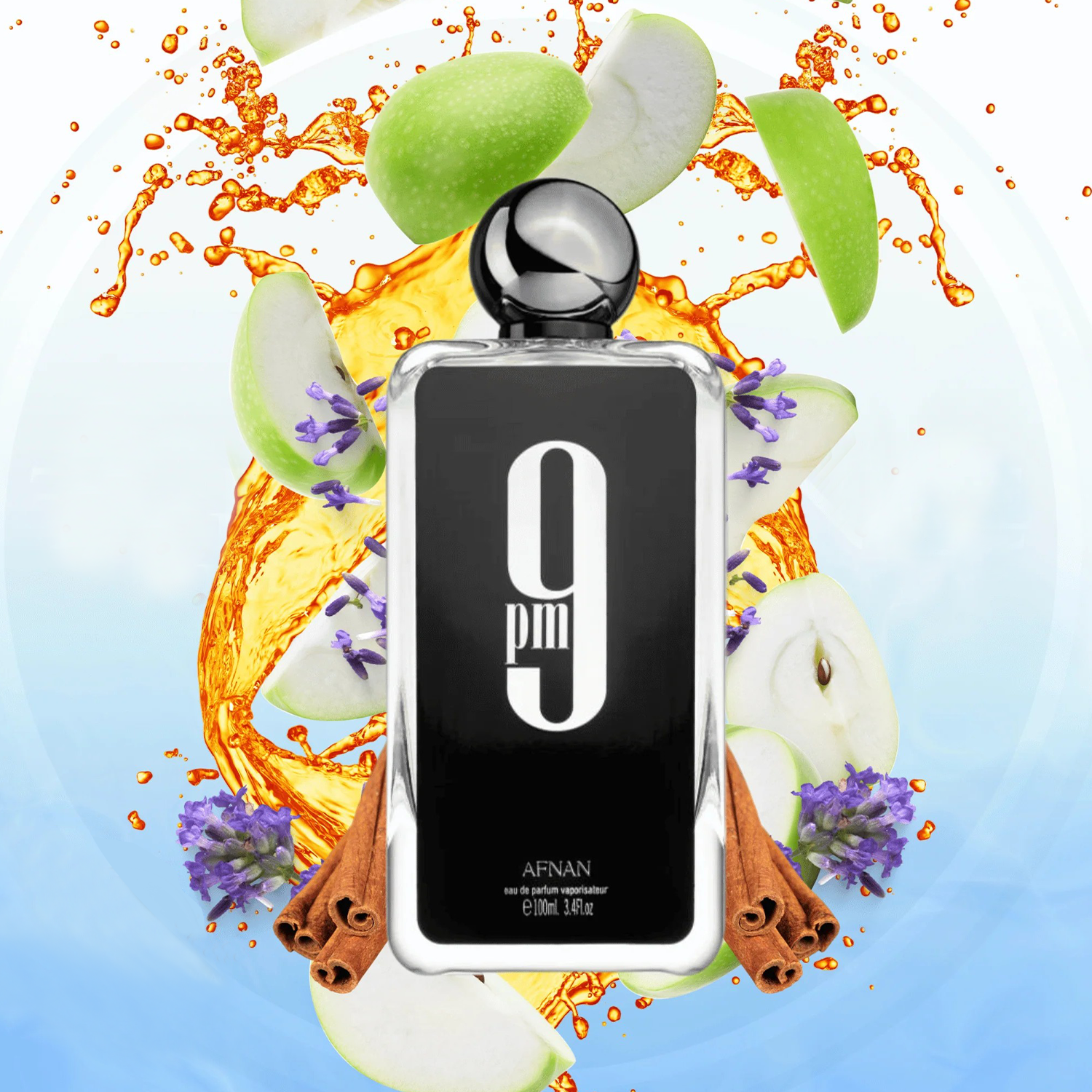 Afnan 9PM EDP For Men smells warm and inviting with sweet notes of vanilla and amber, combined with fresh hints of apple, cinnamon, and a touch of citrus.