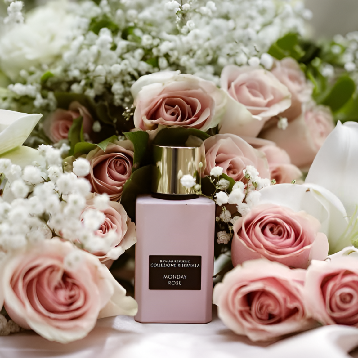 عطر Banana Republic Collezione Riservata Monday Rose Extrait De Parfum يتميز برائحة حديقة مزهرة خصبة عند الفجر، مع نوتات غنية من الورد، ونفحات خشبية، وقليل من الحلاوة، مما يجعله مثاليًا لأي مناسبة.