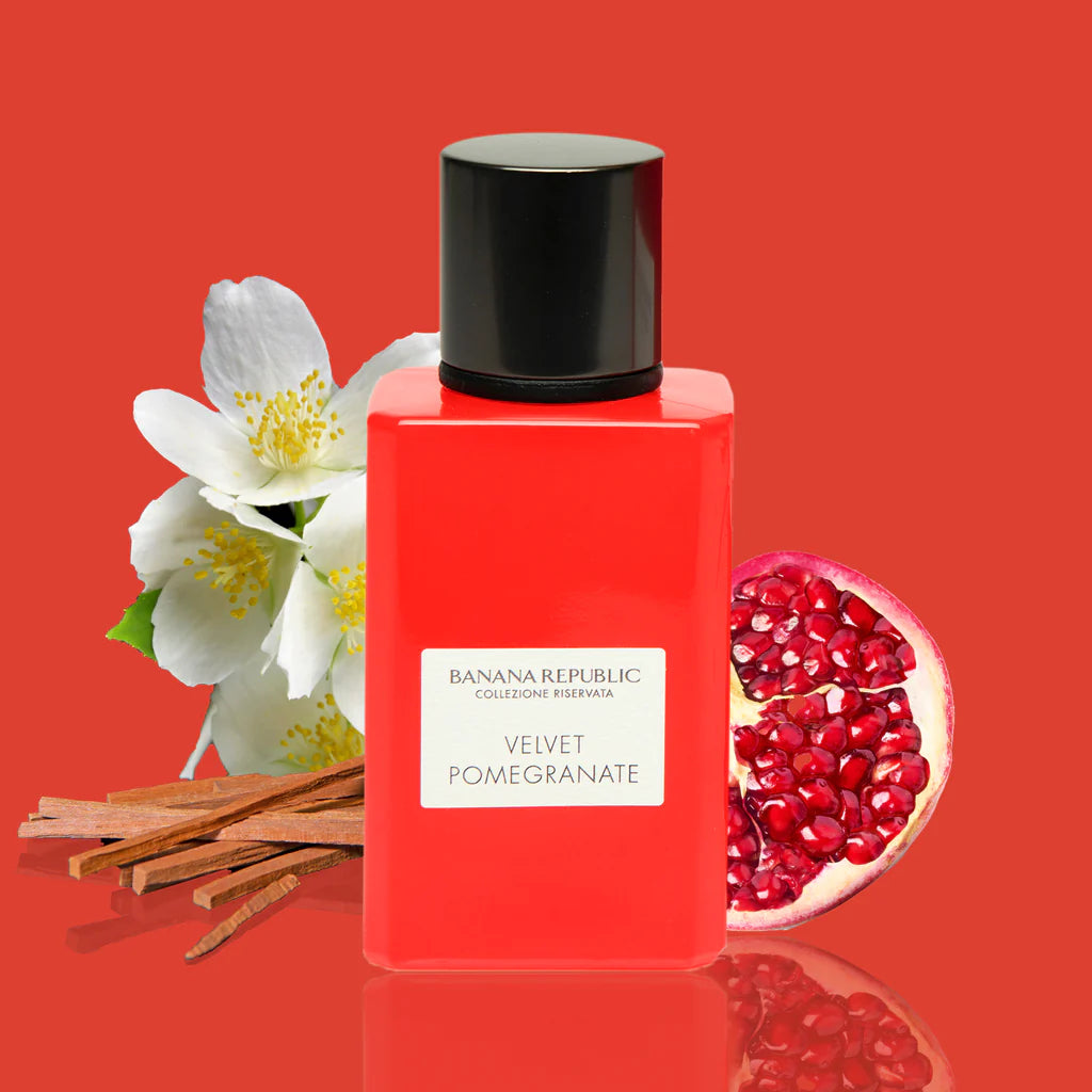 يتميز عطر Banana Republic Collezione Riservata Velvet Pomegranate EDP برائحة مزيج رائع من الرمان الحلو والبرغموت المنعش، جنبًا إلى جنب مع المكونات الزهرية الناعمة والخشبية الدافئة، مما يخلق رائحة آسرة تشبه الفواكه والترابية.
