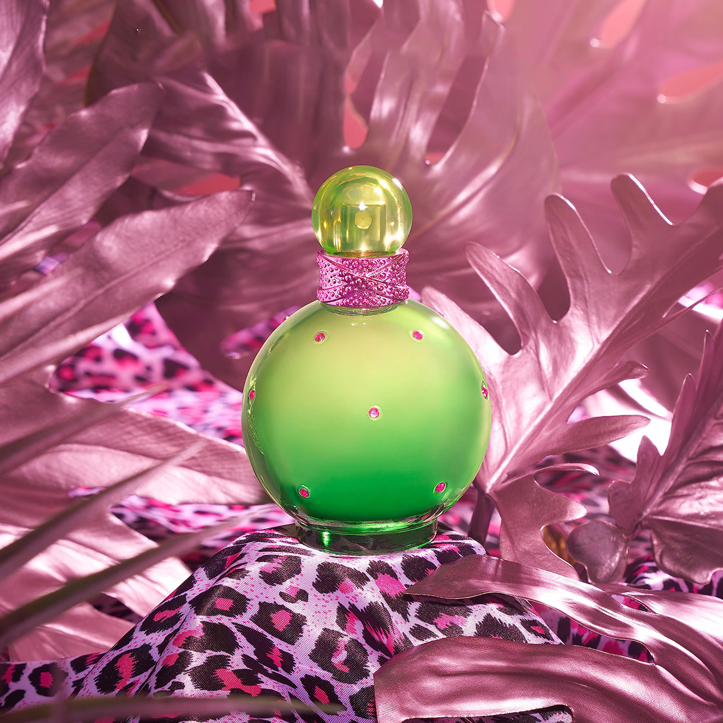 يتميز عطر Britney Spears Jungle Fantasy EDT برائحة مزيج من المرح والمغامرة من الفواكه الاستوائية والزهور الخصبة والمكونات الخضراء المنعشة، مما يجعله أشبه بهروب نابض بالحياة إلى جنة برية.