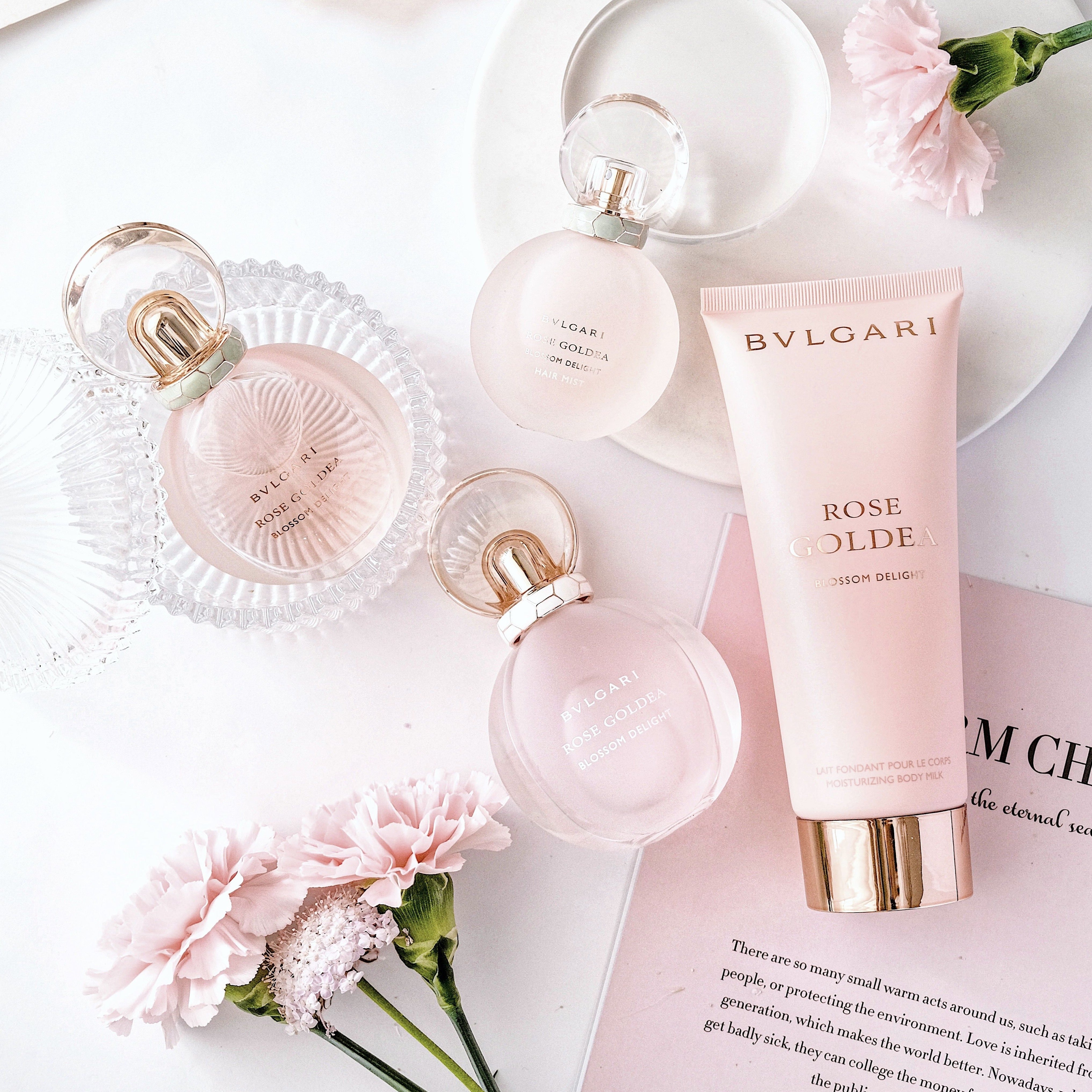 انغمسي في جوهر حديقة الورود المزهرة مع حليب الجسم المرطب روز جولديا بلوسوم ديلايت من بولغاري.