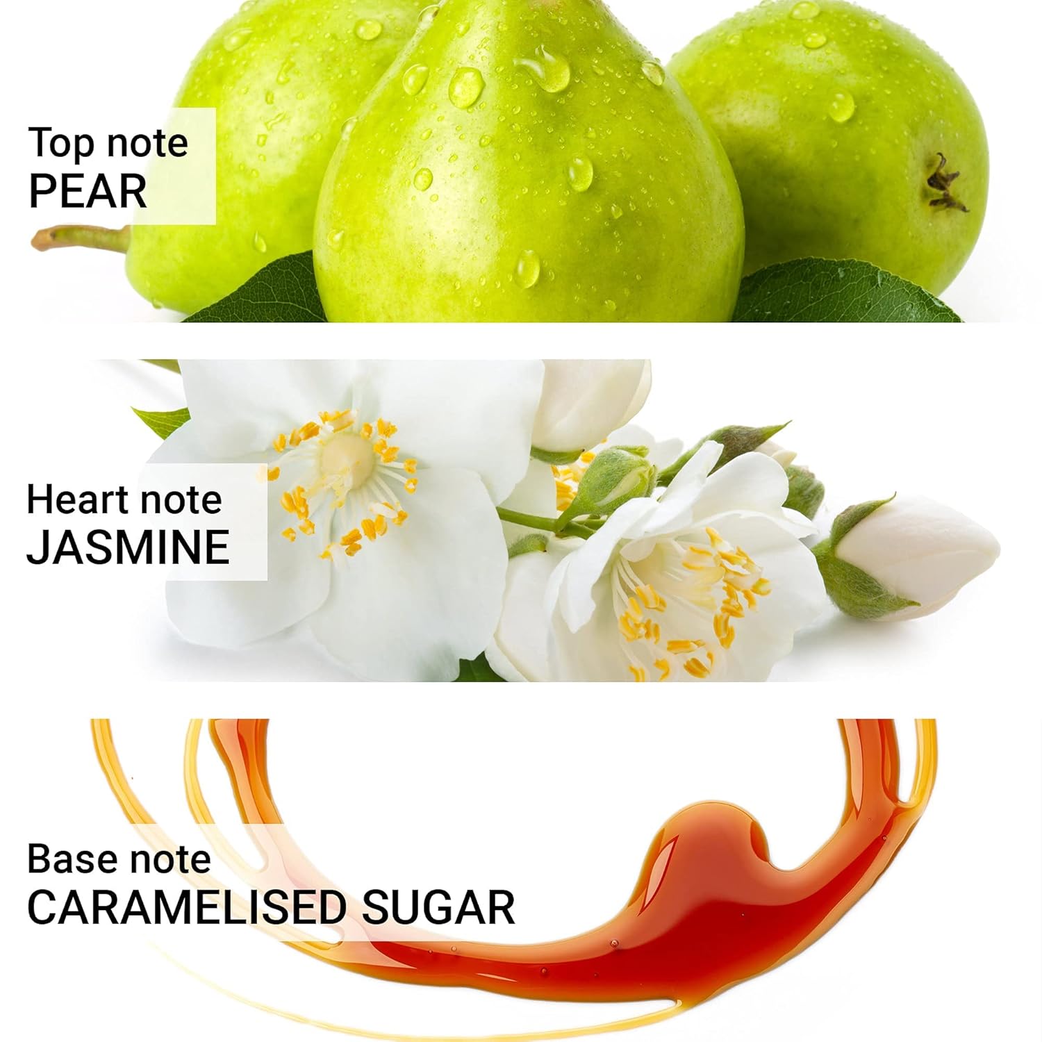 - المكونات العليا: الكمثرى والكشمش الأسود