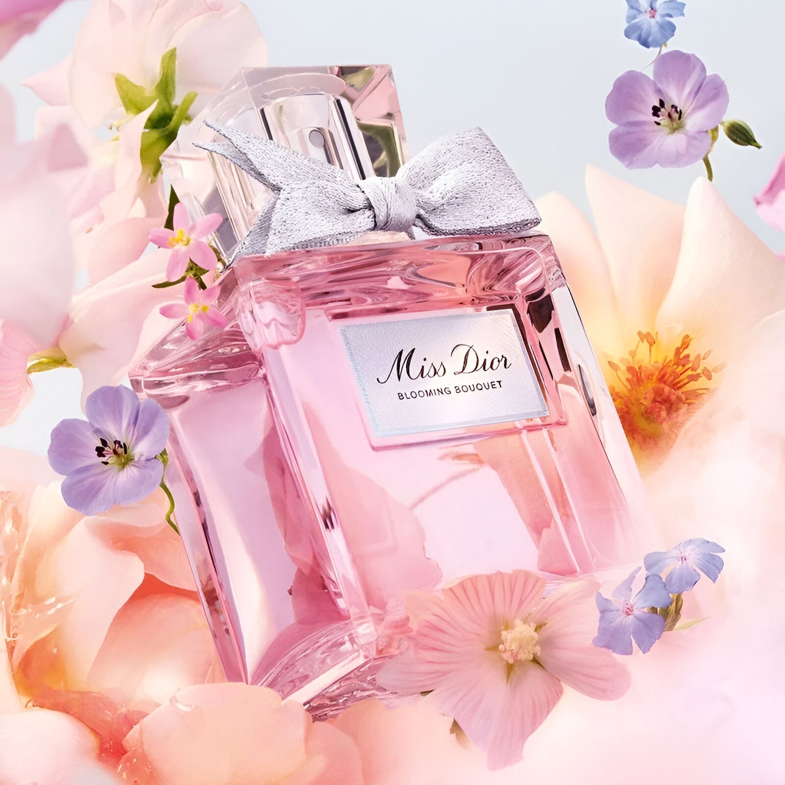 Christian Dior Miss Dior Blooming Bouquet Exclusive Pack EDT smells like a beautiful mix of fresh flowers, with notes of peony and rose, balanced by a hint of citrus and soft musk, making it perfect for any sophisticated woman.