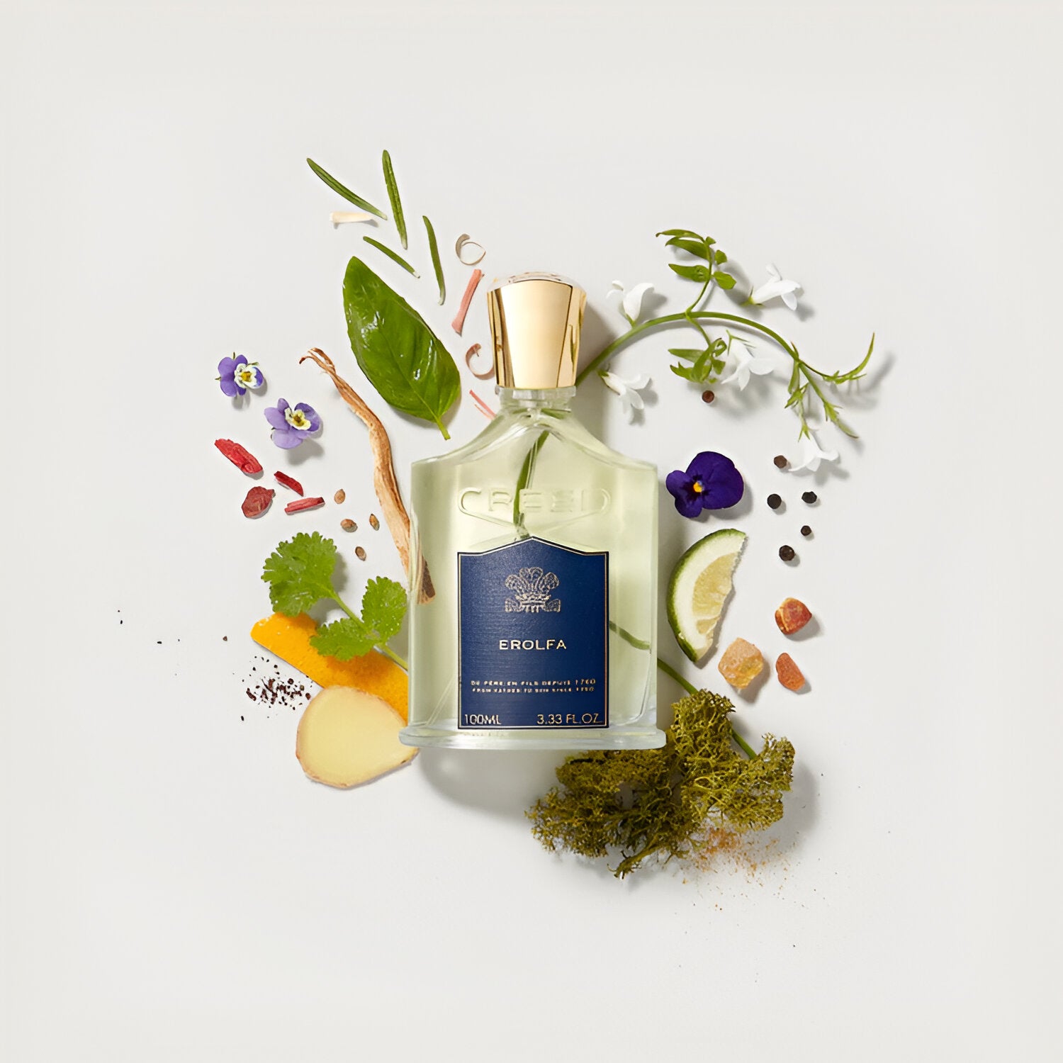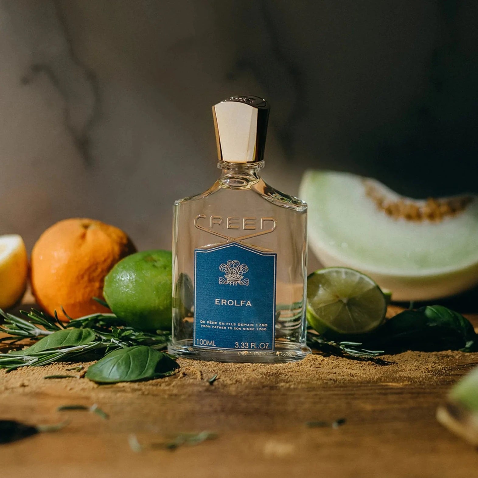يتميز عطر Creed Erolfa EDP برائحة مزيج منعش من الفواكه المتألقة والروائح البحرية، مما يستحضر سحر ومغامرة الرحلات الساحلية المتوسطية.