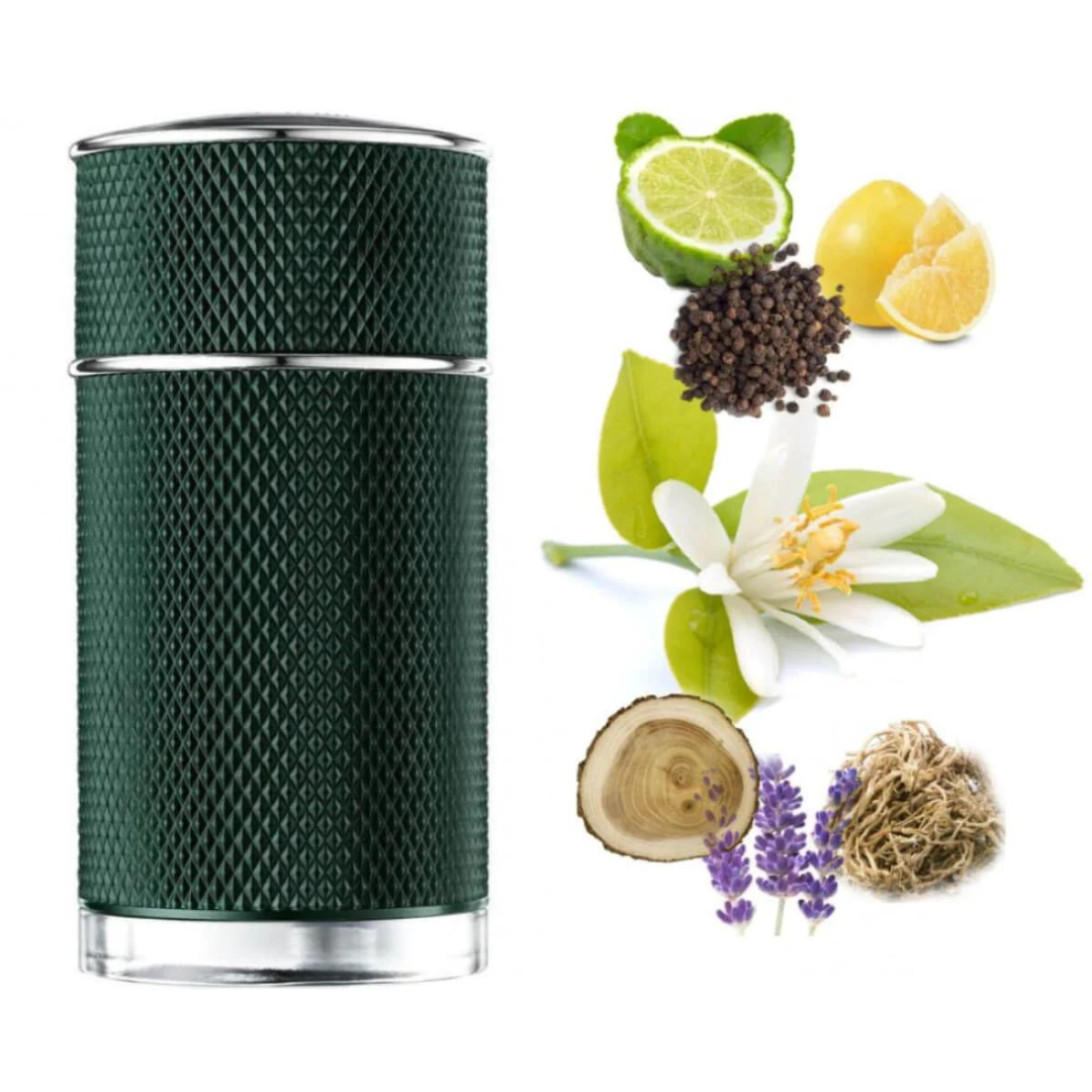 يتميز عطر Dunhill Icon Racing EDP برائحة خضراء منعشة مع لمحات من الريف البريطاني والطاقة المنعشة للسباق.