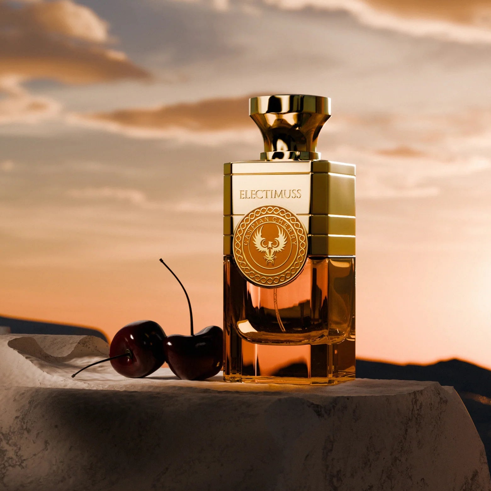 Electimuss Explorer Collection Caspian Cherry Pure Parfum smells sweet and rich, with delicious notes of black cherry, smooth amaretto, and dark chocolate, creating a luxurious and indulgent fragrance.