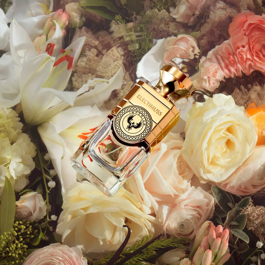 Electimuss Imperium Pure Parfum smells luxurious and uplifting, featuring fruity notes of pineapple and apple, fresh bergamot, and a warm, earthy blend of birch, patchouli, musk, and oakmoss, all inspired by the elegance of Ancient Rome.