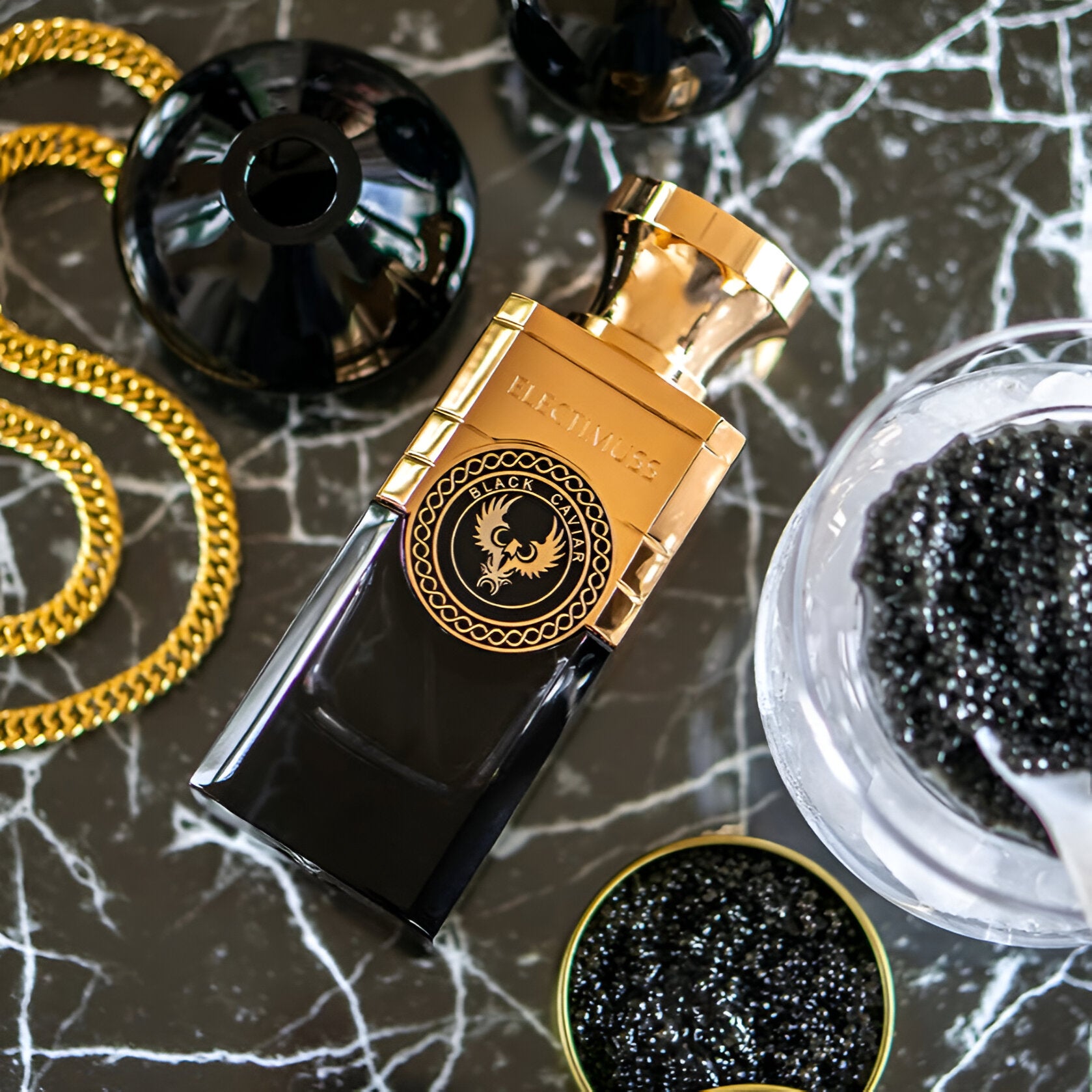 Electimuss Nero Collection Black Caviar Pure Parfum smells luxurious and rich, combining the deep, earthy notes of oud and cedar with a hint of caviar and spices, evoking the opulence of Ancient Rome.