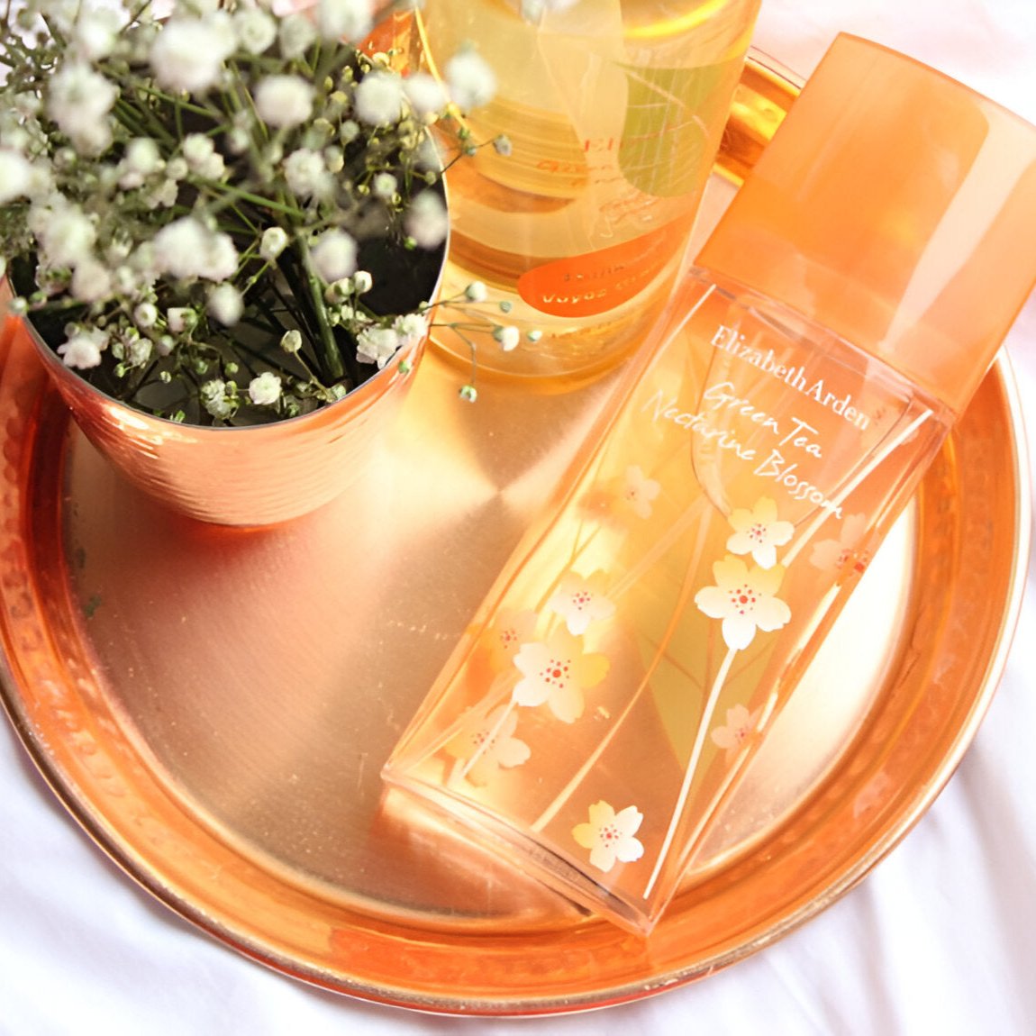 يتمتع عطر Elizabeth Arden Green Tea Nectarine Blossom EDT برائحة منعشة وفاكهية، حيث يجمع بين نضارة الشاي الأخضر مع مكونات حلوة من الخوخ العصير وقليل من النغمات الزهرية.