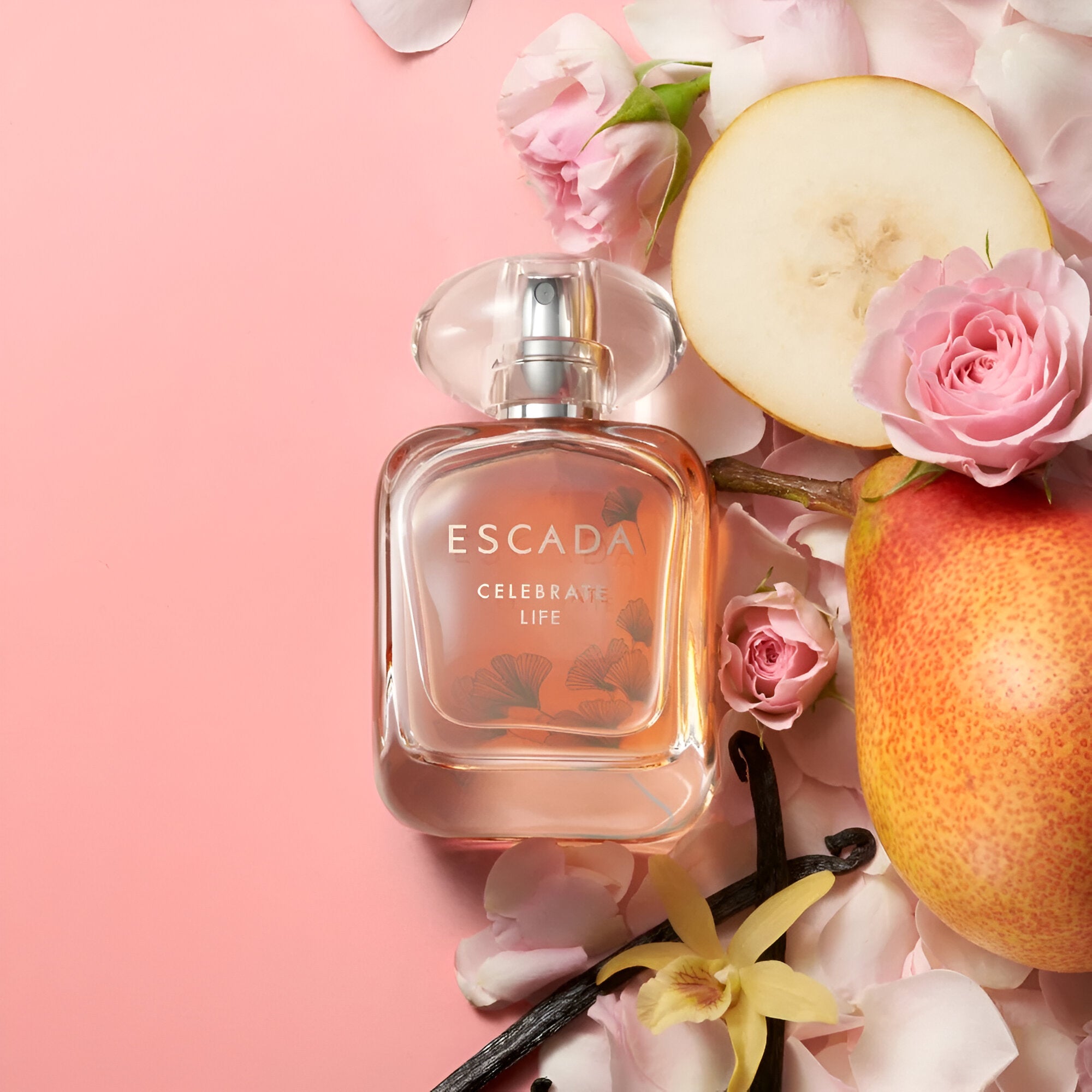 يتميز عطر Escada Celebrate Life EDP برائحة نابضة بالحياة والفواكه تجمع بين النوتات الحلوة من الخوخ الناضج والحمضيات المنعشة مع قلب زهري، مما يخلق عطرًا مبهجًا ومبهجًا مثاليًا للاحتفال باللحظات الخاصة.