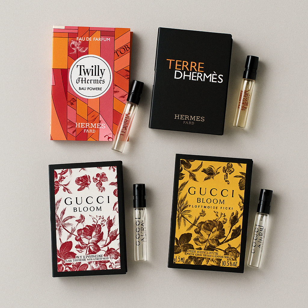يتضمن صندوق الاشتراك الخاص بك قوارير عينات أصلية من علامات تجارية مثل: Anna Sui، وBurberry، وBvlgari، وCalvin Klein، وChloé، وChopard، وDior، وDolce & Gabbana، وGivenchy، وPaco Rabanne، وVersace، وغيرها الكثير.