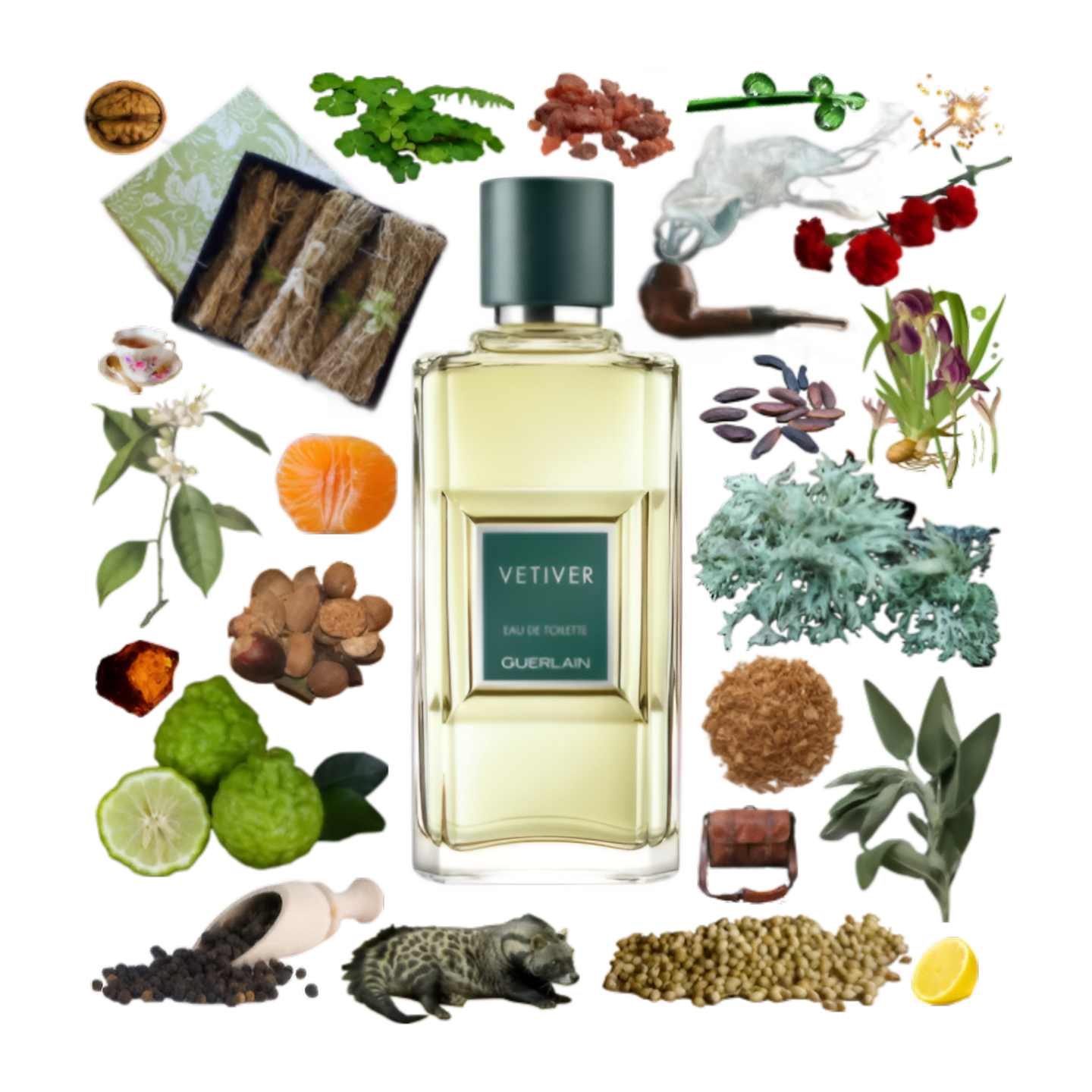 يتميز عطر Guerlain Vetiver EDT برائحة مزيج من جذور نجيل الهند الترابية مع رائحة خشبية، تكملها رائحة الحمضيات المنعشة وقليل من إكليل الجبل.