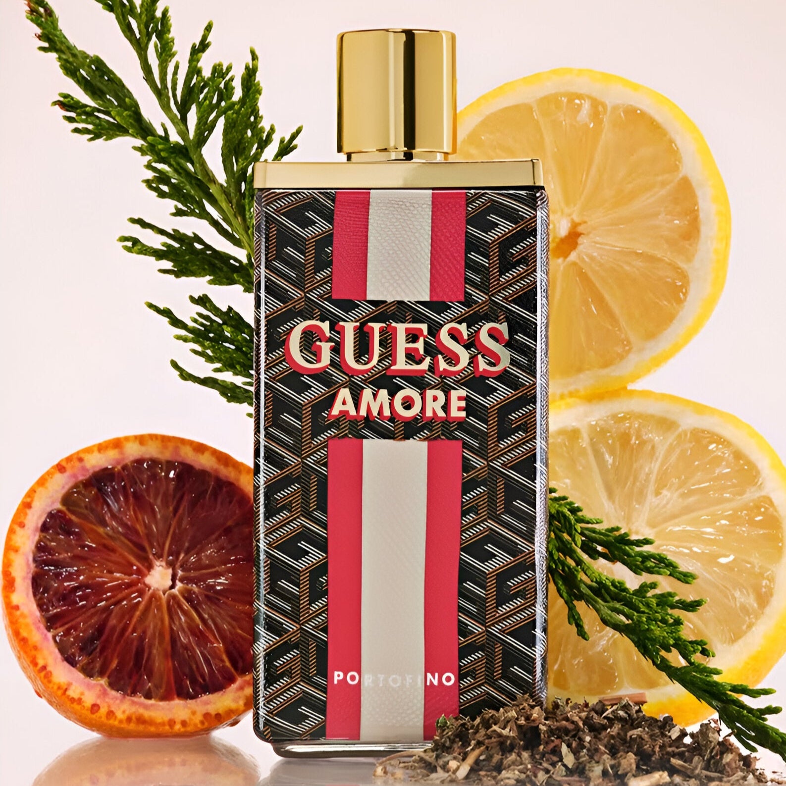 عطر Guess Amore Portofino EDT يشبه رائحة ملاذ البحر الأبيض المتوسط المشمس، فهو يمزج بين الحمضيات المنعشة والسرو الإيطالي مع لمسة زهرية من نبات إبرة الراعي، ويجسد جوهر المغامرات الخالية من الهموم على الساحل.
