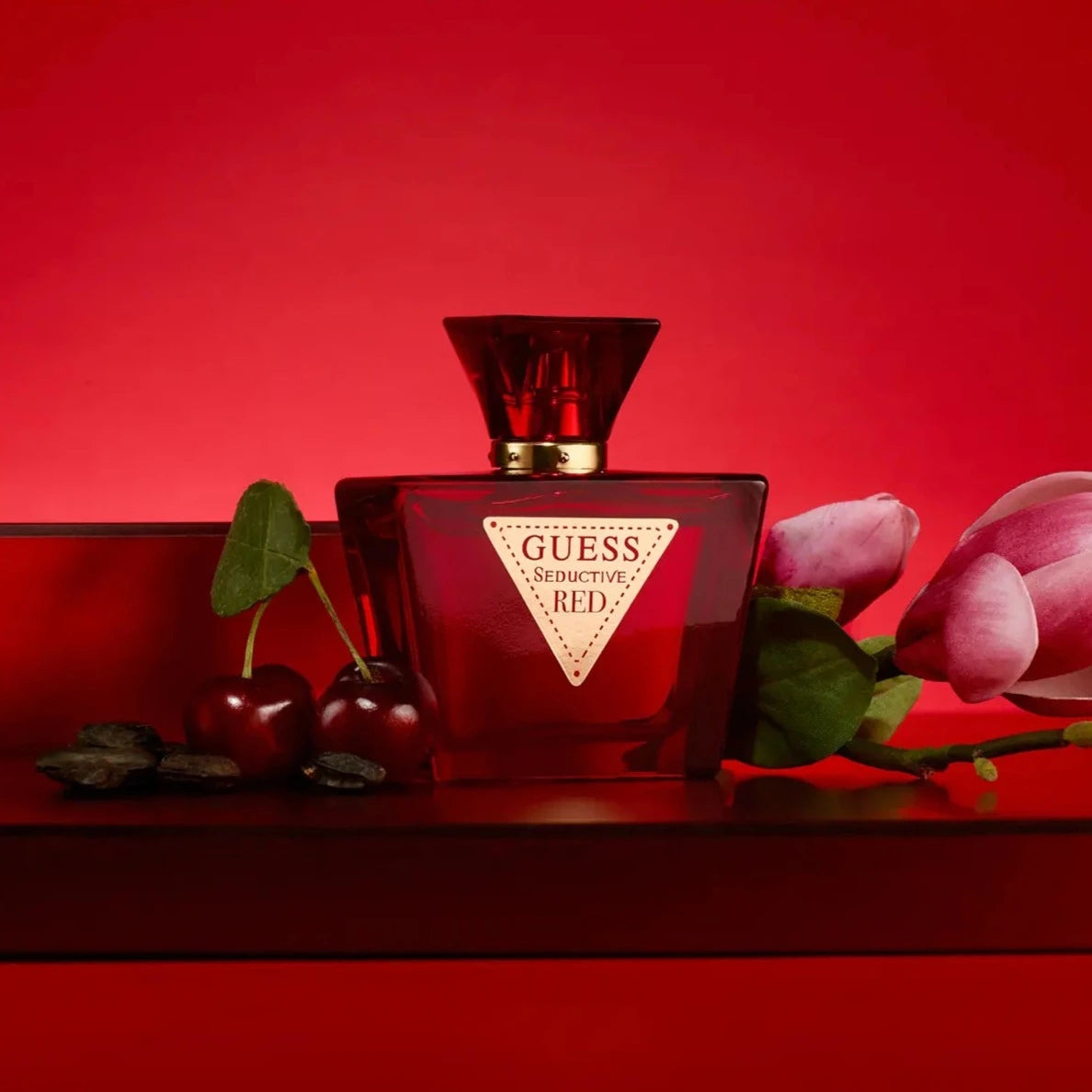 يتميز بخاخ الجسم Guess Seductive Homme Red برائحة مزيج من الكمثرى الحلوة وماء الورد الناعم والتين الترابي ولمسة من الباتشولي الحار للحصول على رائحة آسرة وواثقة.