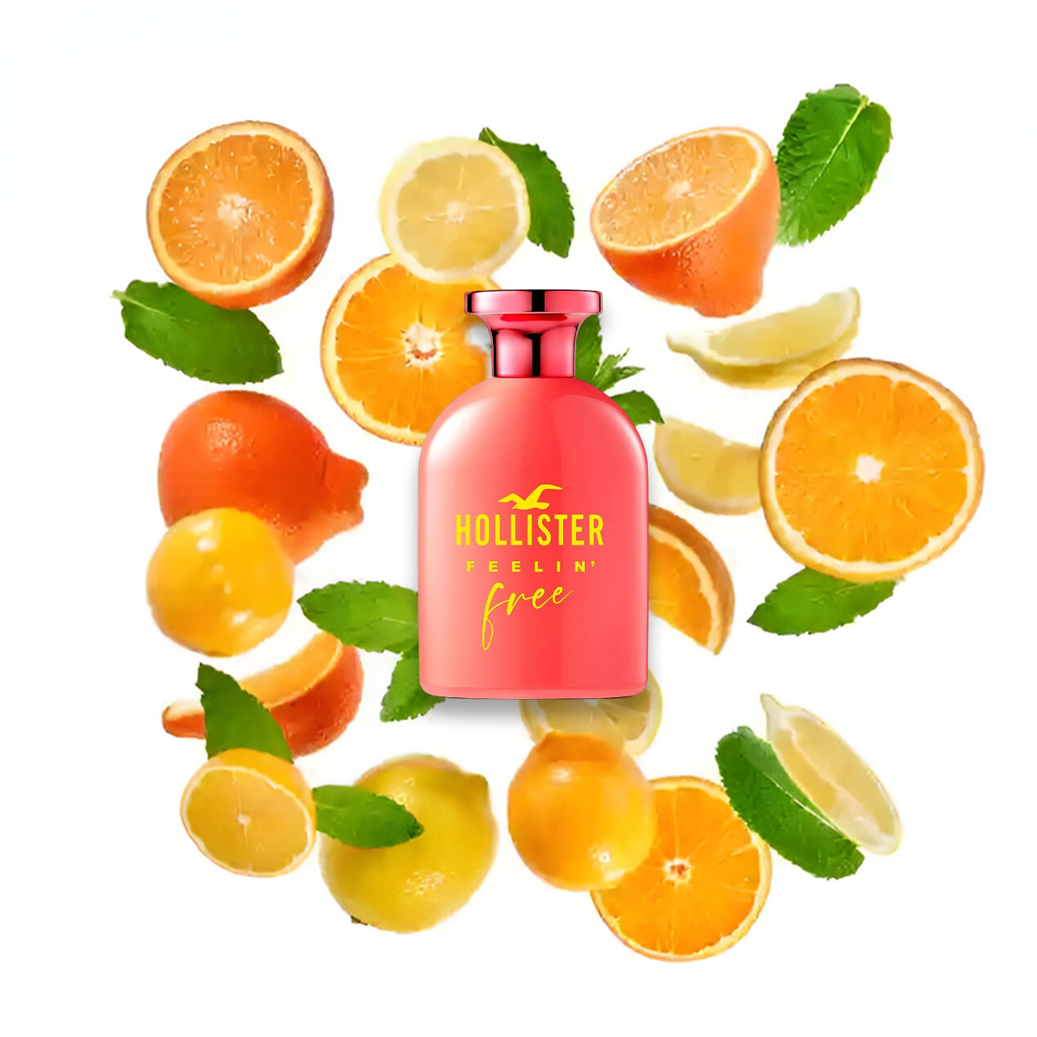 Hollister Feelin' Free For Her EDP smells fresh and lively with bright notes of lemon and peach, balanced by floral peony and a hint of spicy pink pepper, all wrapped in a warm, woody base of sandalwood.