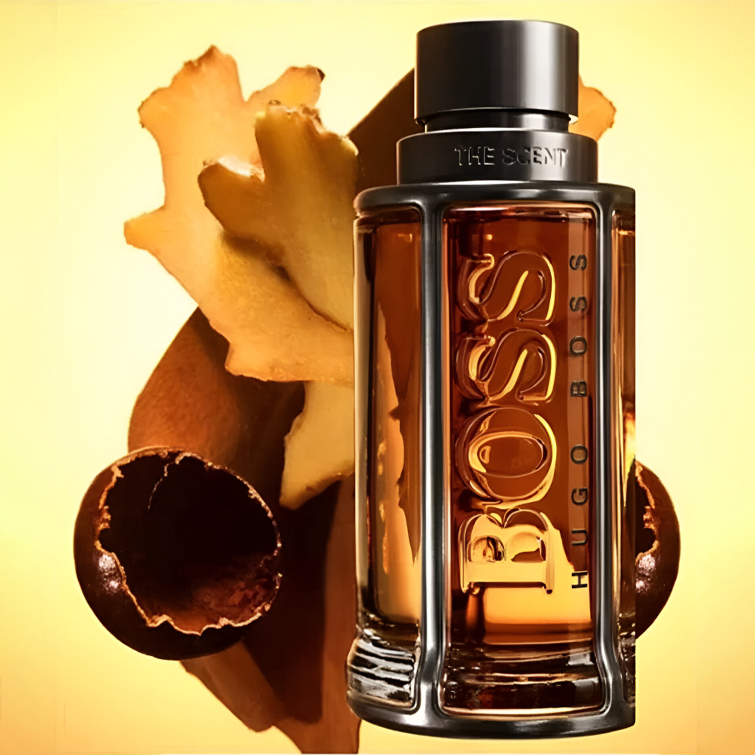 Hugo Boss Boss The Scent Parfum smells warm and inviting with spicy ginger, fruity maninka, rich leather, and deep woody notes, creating a sophisticated and alluring fragrance.
