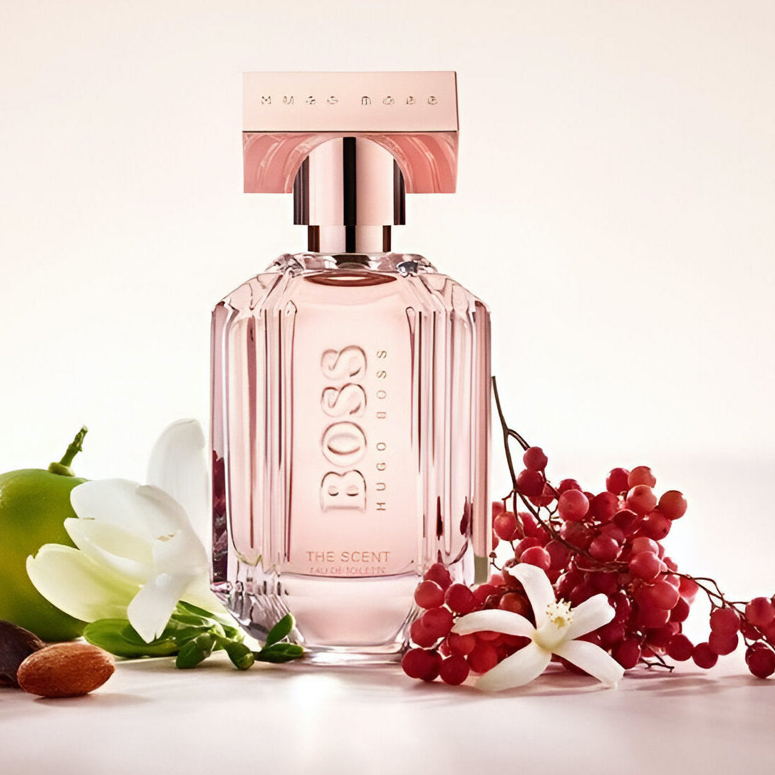 يجمع عطر Hugo Boss The Scent EDP For Her بين اليوسفي الأخضر والفلفل الوردي وزهر البرتقال والكاكاو المحمص للحصول على رائحة زهرية فاكهية فاخرة مع نغمات دافئة شهية.