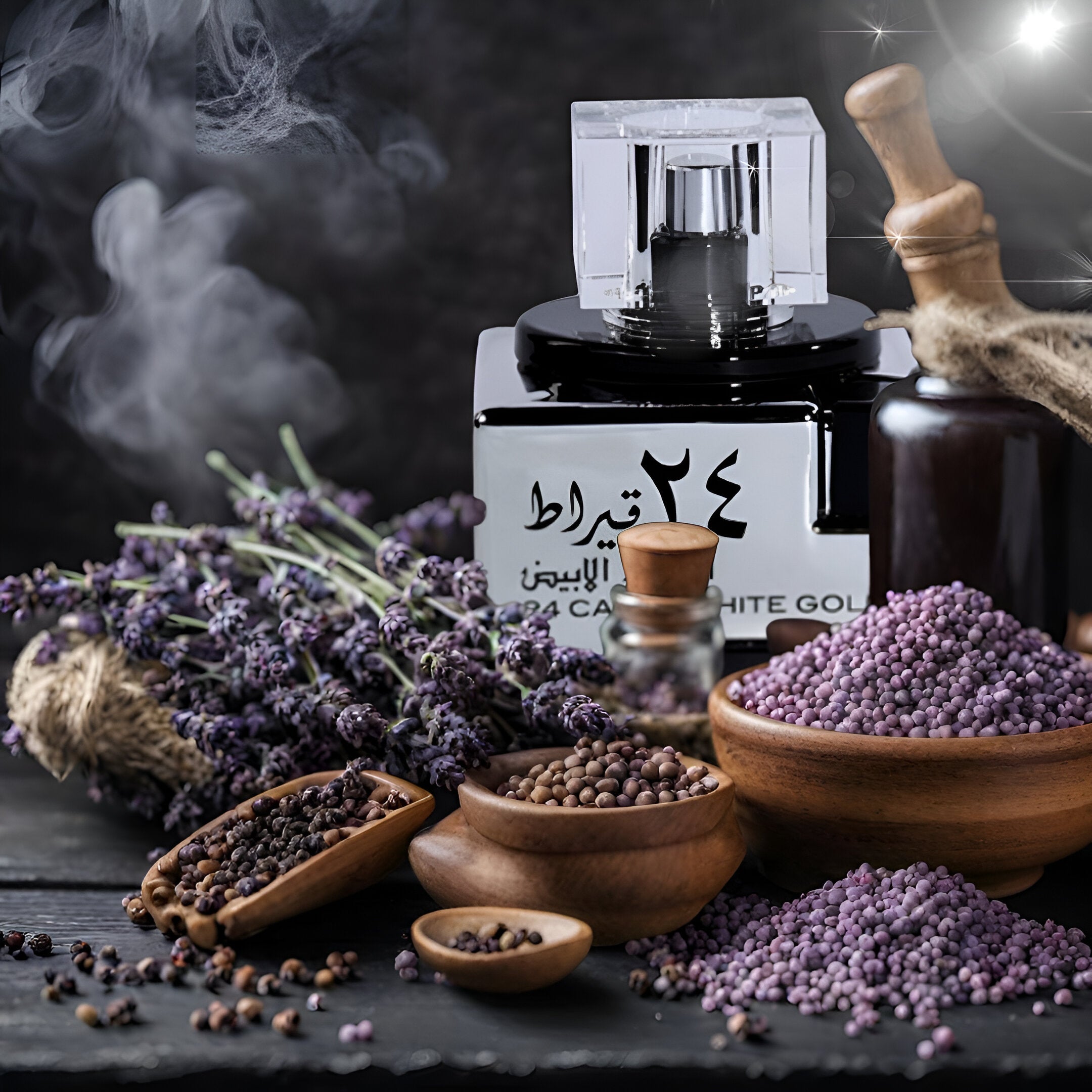 اكتشف عطر لطافة الذهبي الأبيض عيار 24 قيراط: عطر فاخر وحسي للجنسين مع العنبر والحمضيات والتوابل والملاحظات الخشبية.