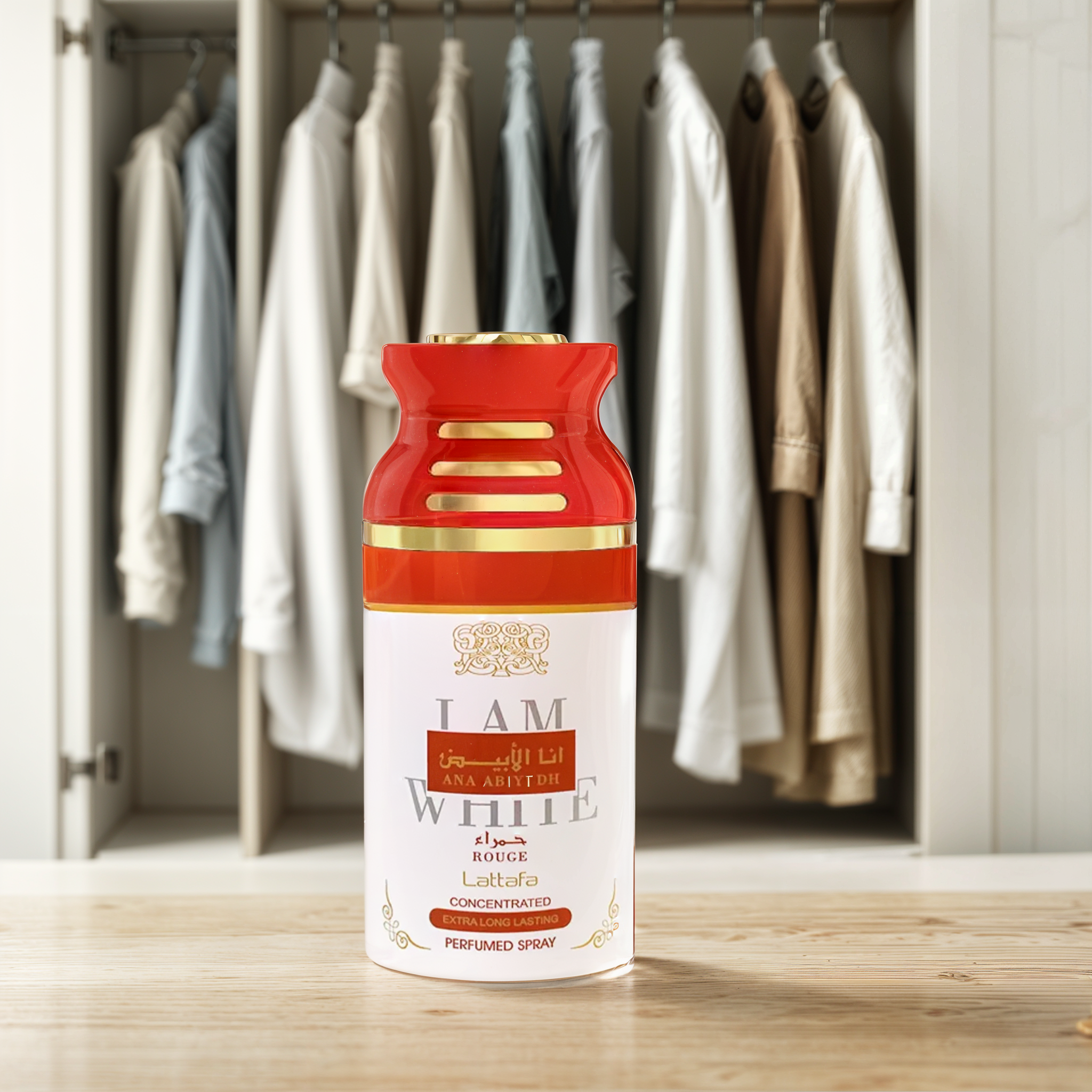 اكتشفي Lattafa I Am White Rouge: مزيل عرق فاخر يدوم طويلاً، يجمع بين الروائح الشرقية والتوابل الخشبية للحصول على جاذبية متطورة.