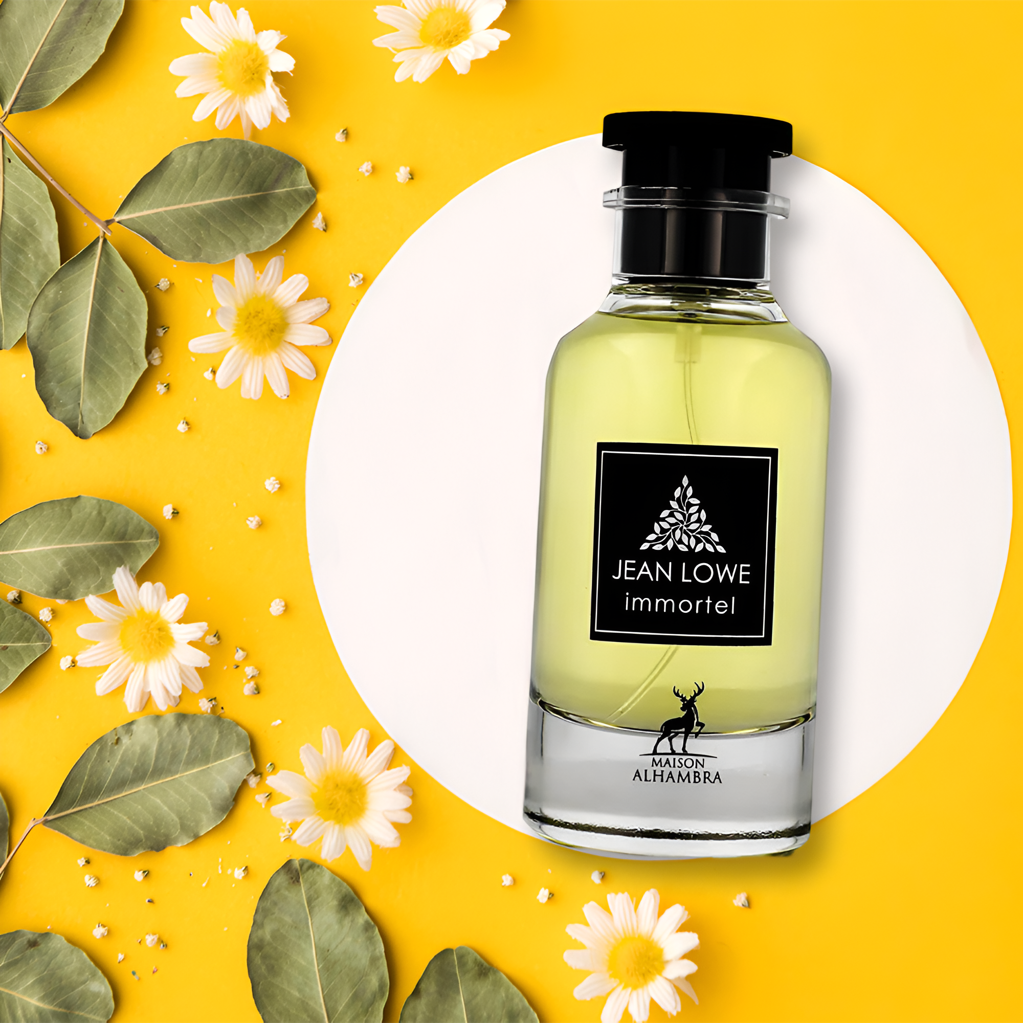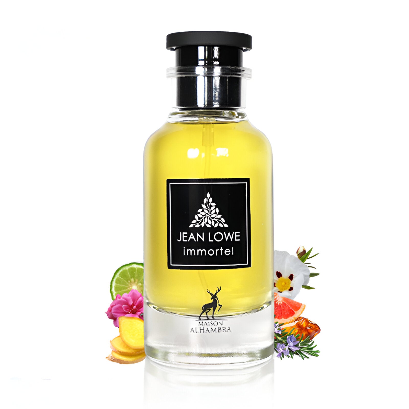 Maison Alhambra Jean Lowe Immortel EDP smells like a refreshing mix of zesty citrus and spicy ginger, combined with aromatic herbs and warm amber notes, making it perfect for any occasion.
