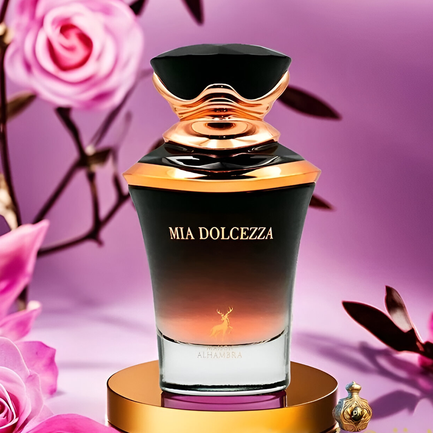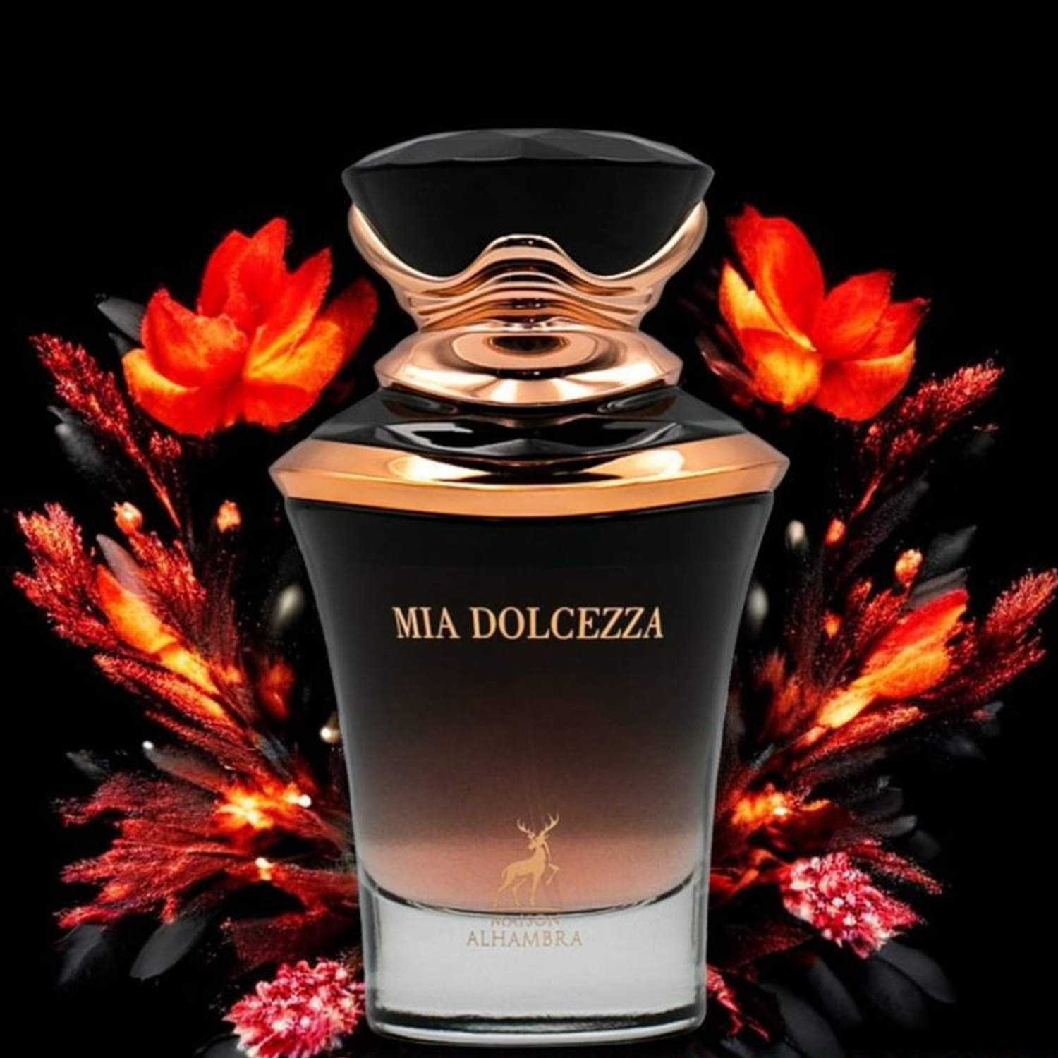 Maison Alhambra Mia Dolcezza EDP smells like a beautiful blend of fresh citrus and fruits, delicate flowers like jasmine and tuberose, and warm notes of vanilla and sandalwood, creating an elegant and uplifting fragrance.