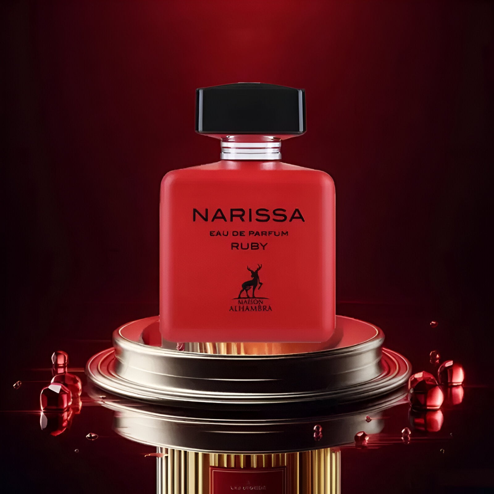 Maison Alhambra Narissa Ruby EDP smells elegant and alluring, featuring a beautiful mix of floral notes like Bulgarian rose and tuberose, combined with a warm musk that makes it unforgettable.