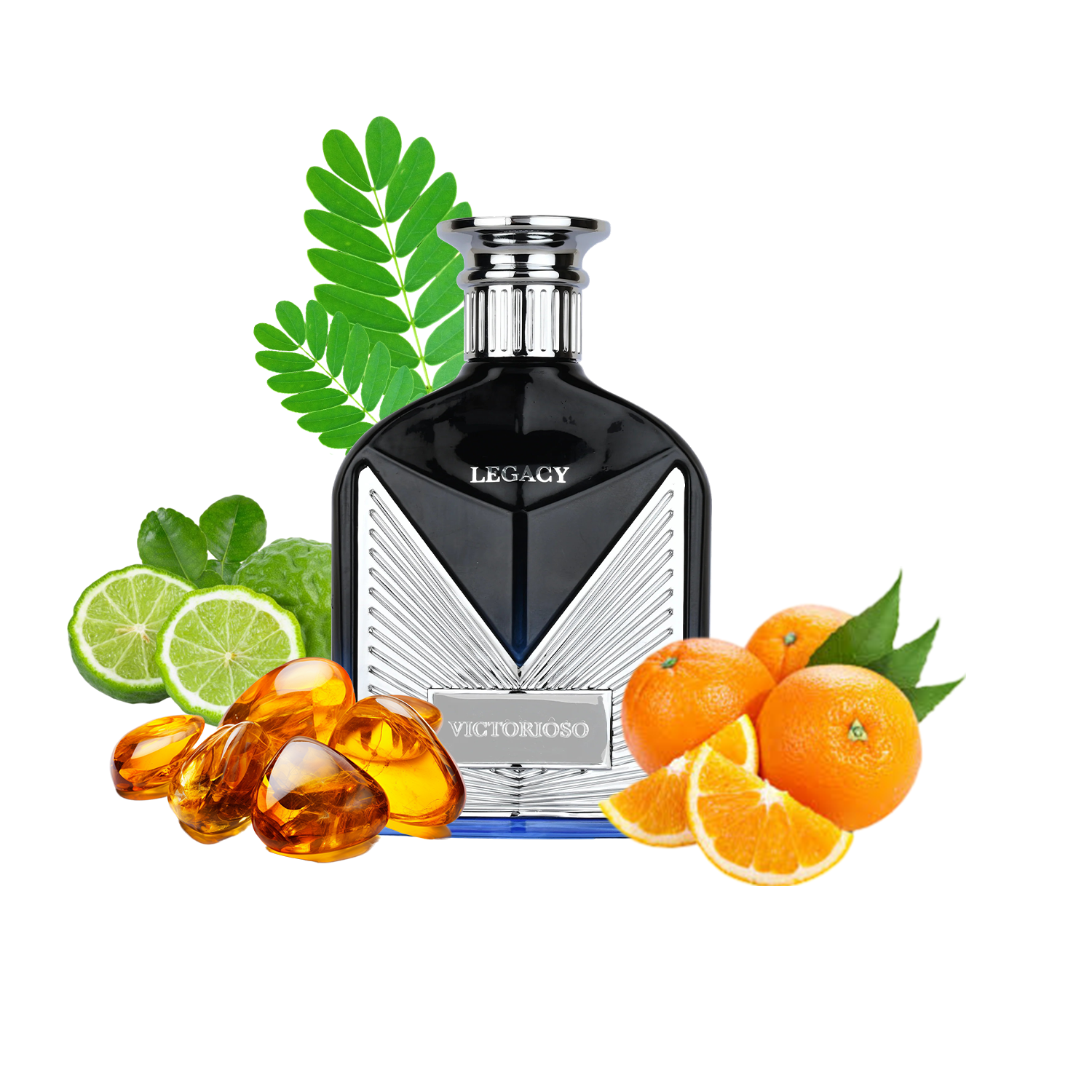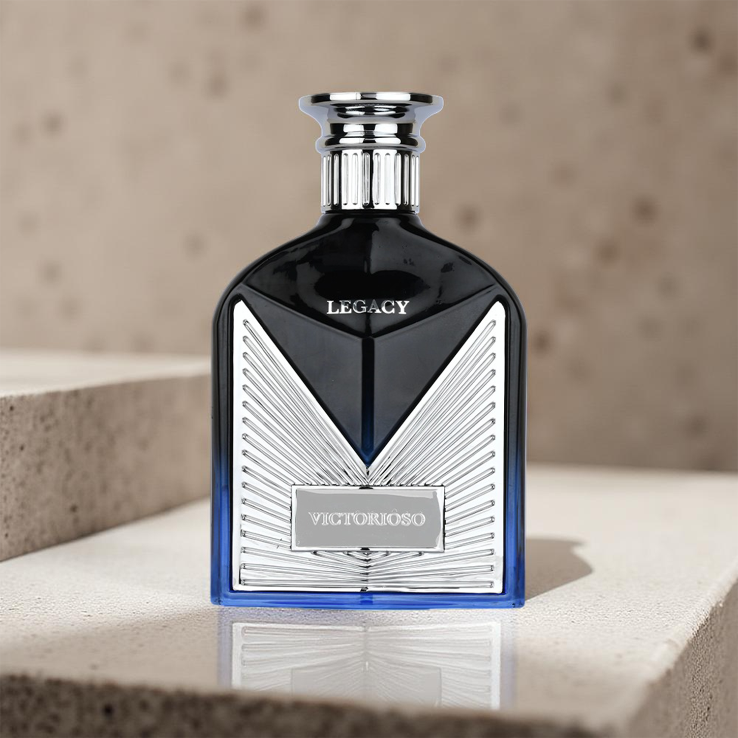 Maison Alhambra Victorioso Legacy EDP smells like a refreshing blend of salty sea air and bright grapefruit, warmed by spicy bay leaves and rich amber, all wrapped in a woody base, making it both powerful and elegant.