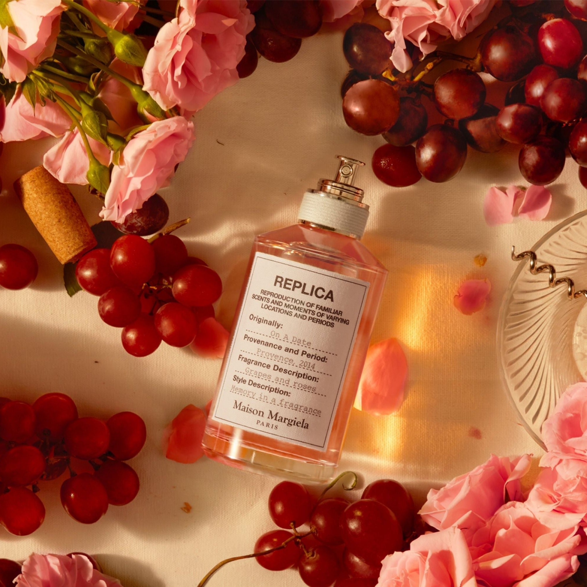 يتميز عطر Maison Margiela Replica On A Date EDT برائحة تجمع بين العنب الناضج ونضارة خلاصة الورد، مما يذكرنا بأمسية صيفية رومانسية في بروفانس.