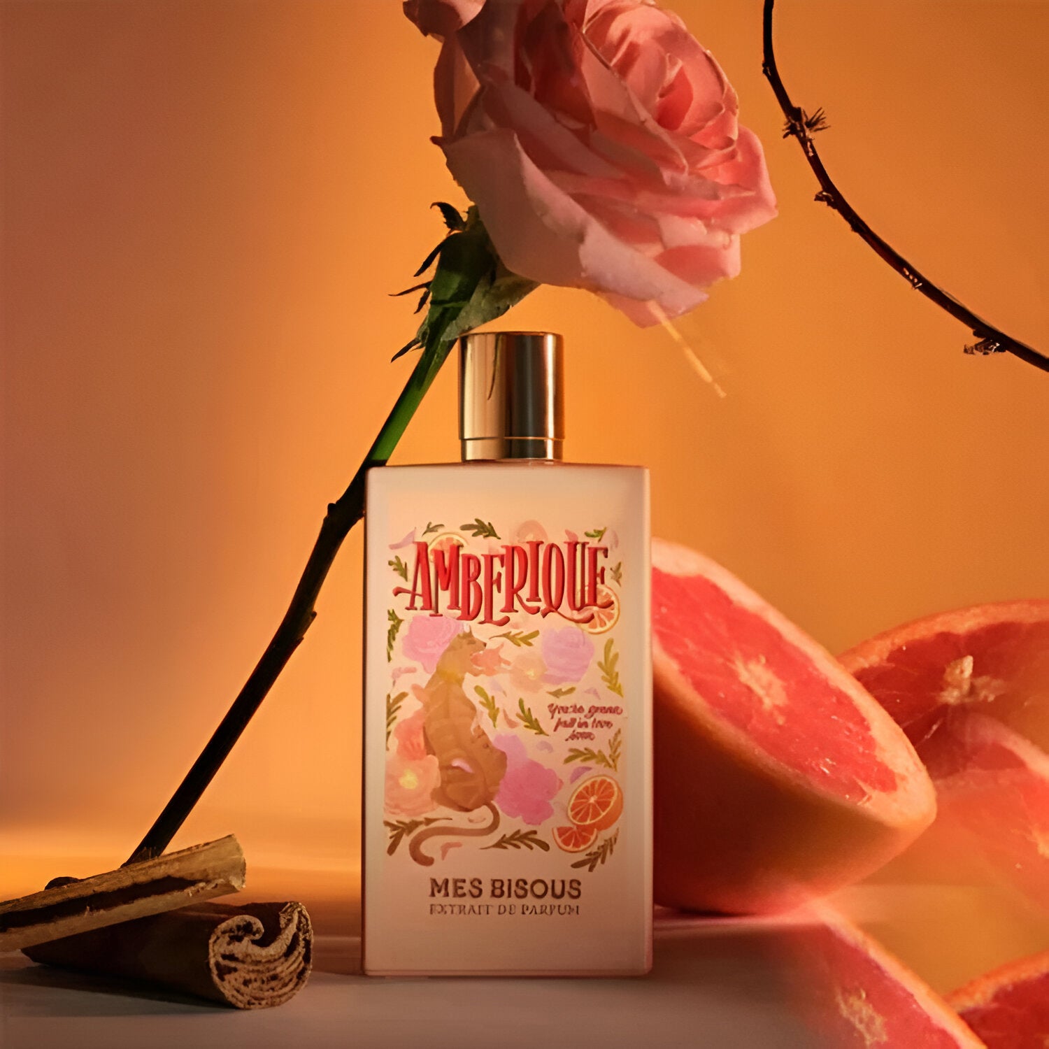 يتميز عطر Mes Bisous Amberique Extrait De Parfum برائحة مزيج دافئ ومثير من الجريب فروت الطازج والورد الرومانسي والفلفل الوردي الحار والعنبر الغني، وكلها ملفوفة في لمحة من القرفة التي تثير مشاعر عميقة وتحكي قصة آسرة.