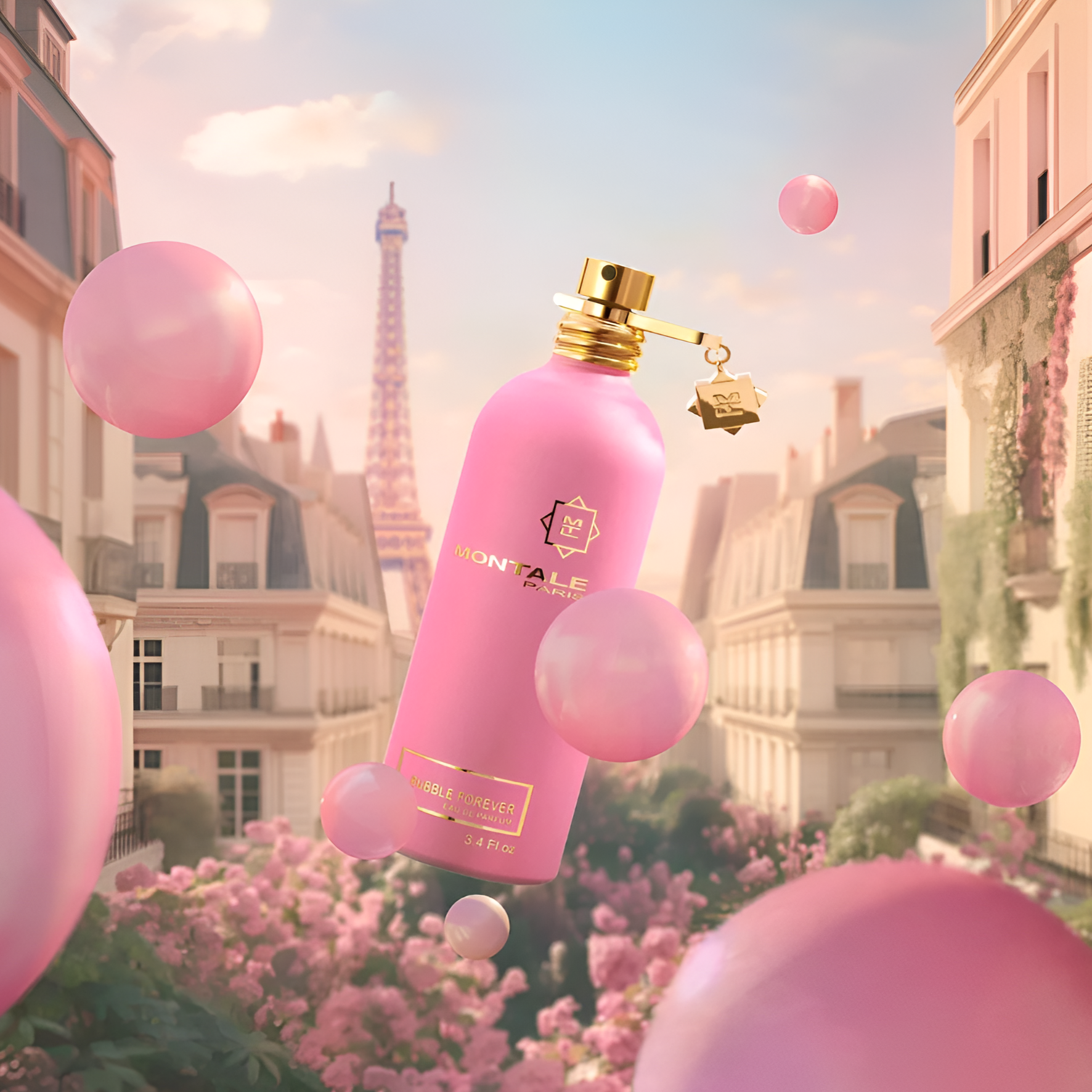 Montale Bubble Forever EDP smells like a cheerful mix of fresh citrus fruits, sweet toffee, and creamy vanilla, reminiscent of childhood bubble gum and joyful memories.