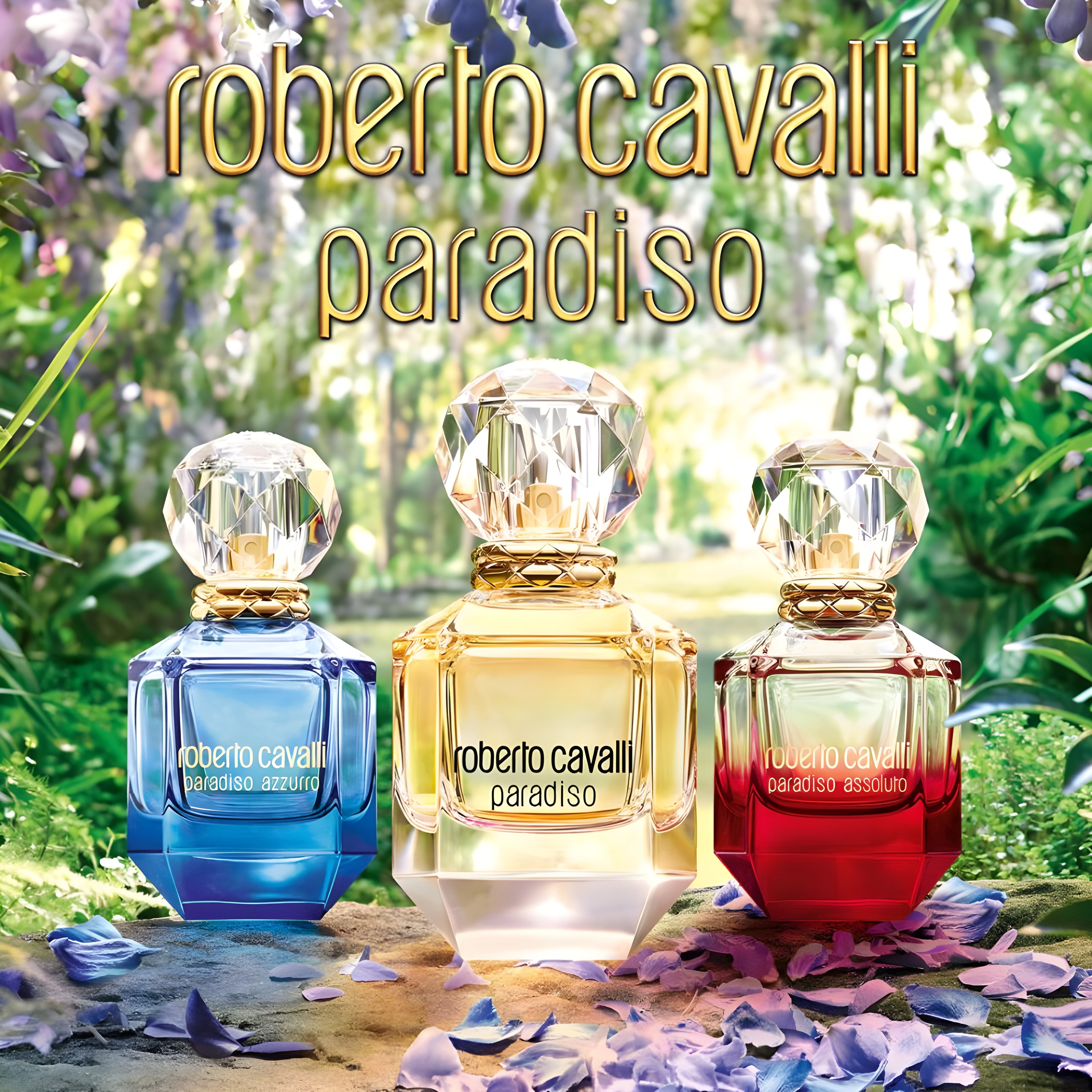 اهرب إلى جنتك الخاصة مع عطر باراديسو أسولوتو من روبرتو كافالي.
