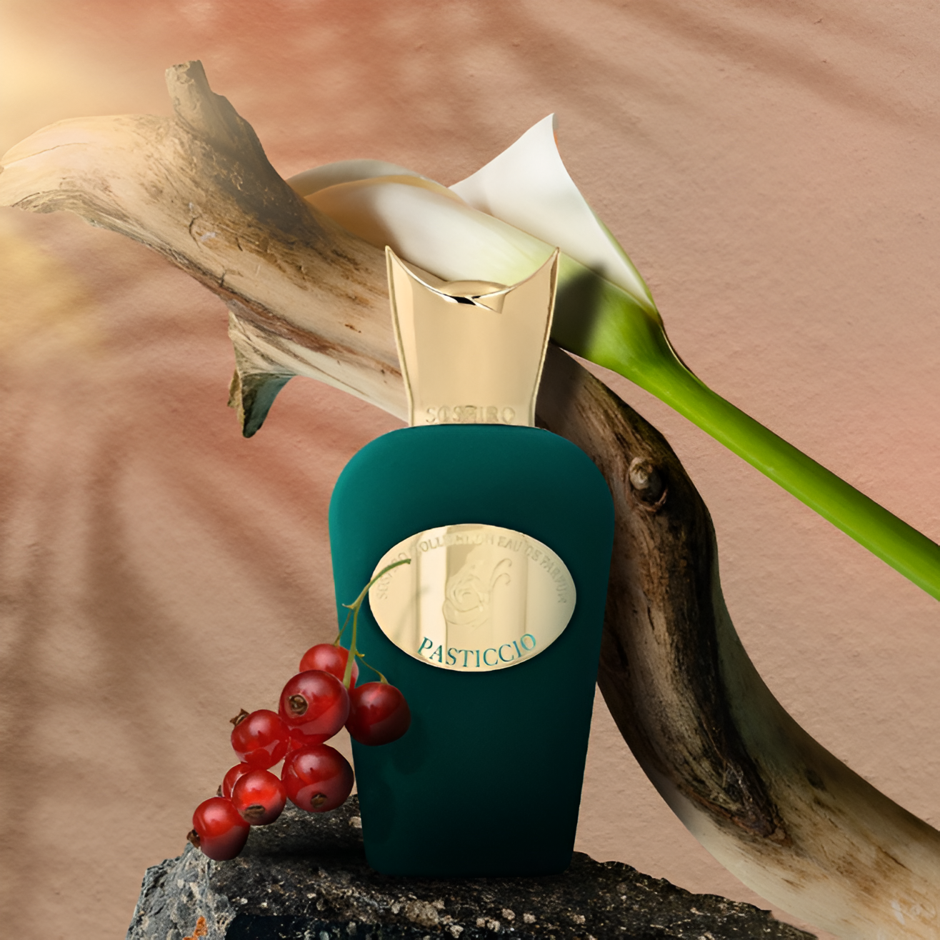 يتميز عطر Sospiro Pasticcio EDP برائحة مزيج متطور من براعم الكشمش الطازج والبرغموت الحمضي وزهر البرتقال الرقيق، بالإضافة إلى المكونات الزهرية من زهرة الزنبق واللمسات الخضراء المنعشة، مما يخلق عطرًا أنيقًا وخالدًا.