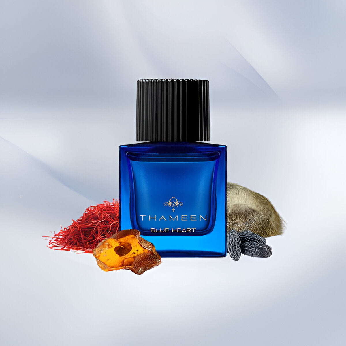 يغمرك عطر Blue Heart Extrait De Parfum من Thameen برائحة العنبر الفاخرة، المستوحاة من الماس الأزرق الغامض، وهو مثالي لأي شخص يبحث عن عطر متطور لأي مناسبة.