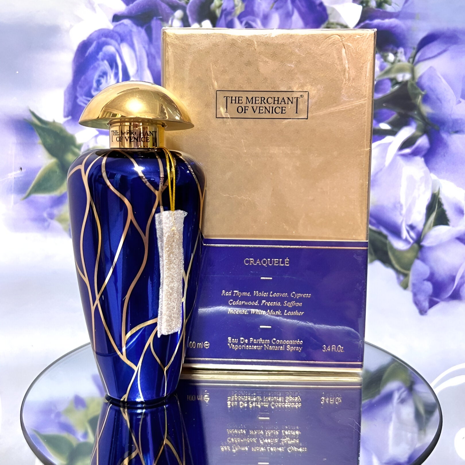 يتمتع عطر The Merchant Of Venice Craquele EDP برائحة فاخرة مستوحاة من فخامة اللون الأزرق والذهبي الفينيسي، وهو مغلف في زجاجة أنيقة من زجاج مورانو تعكس عظمة قصر Ca' d'oro في البندقية.