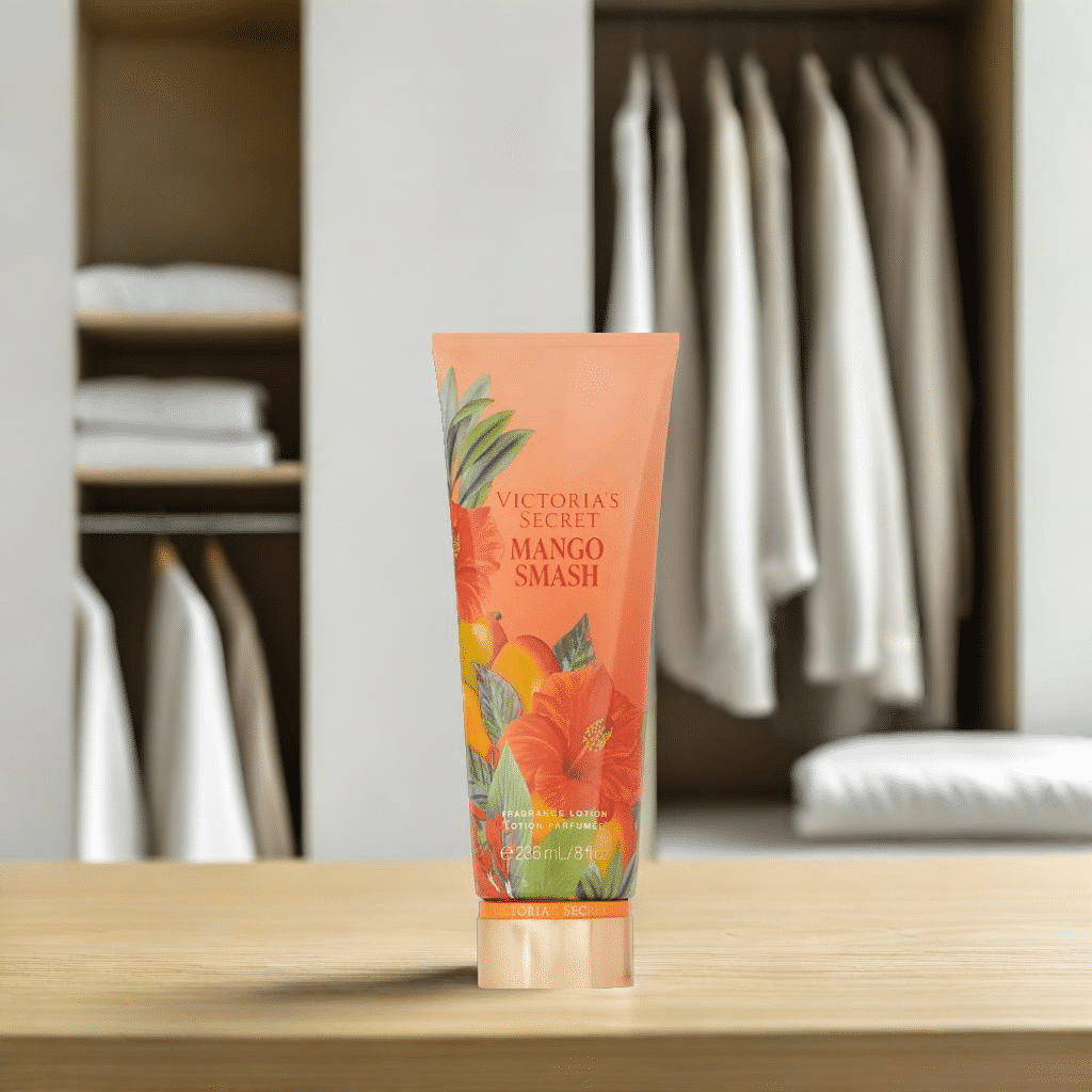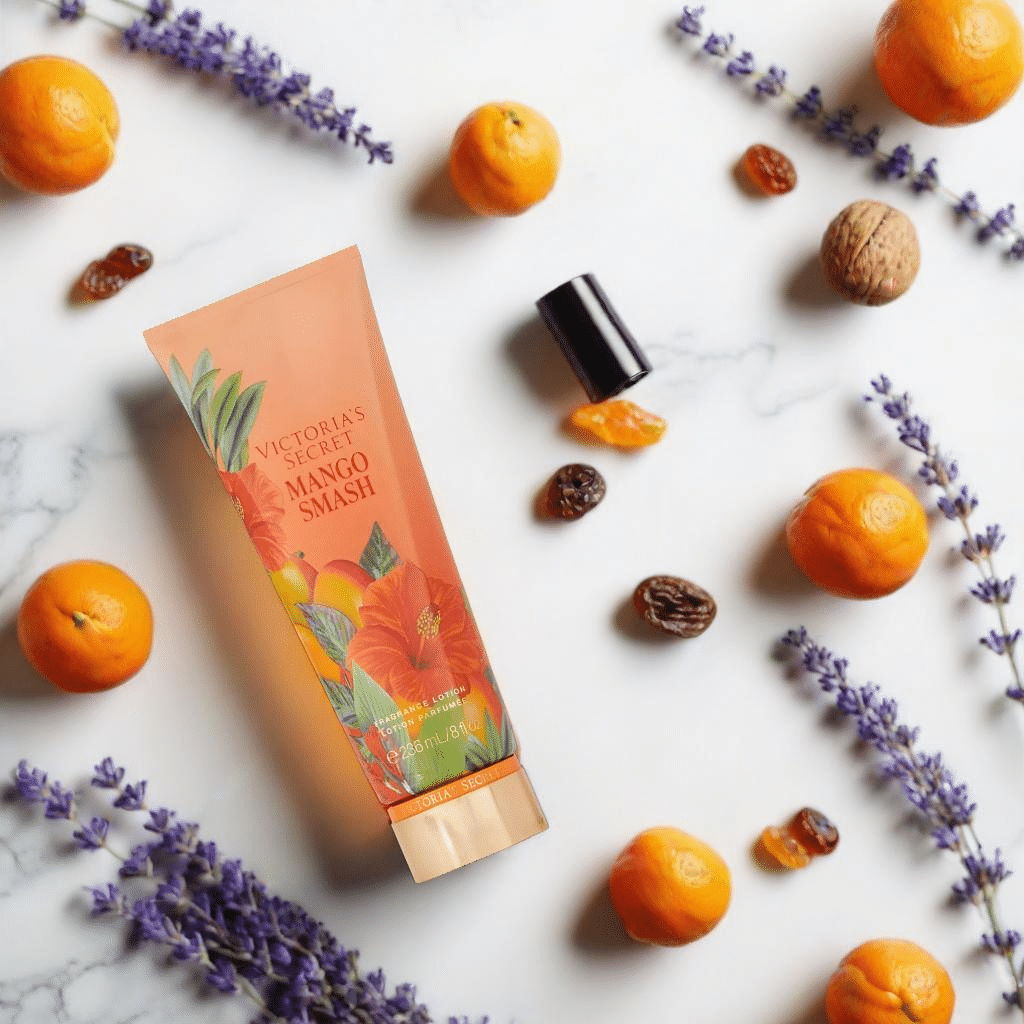 استمتعي بالمتعة الاستوائية مع لوشن معطر مانجو سماش من فيكتوريا سيكريت.