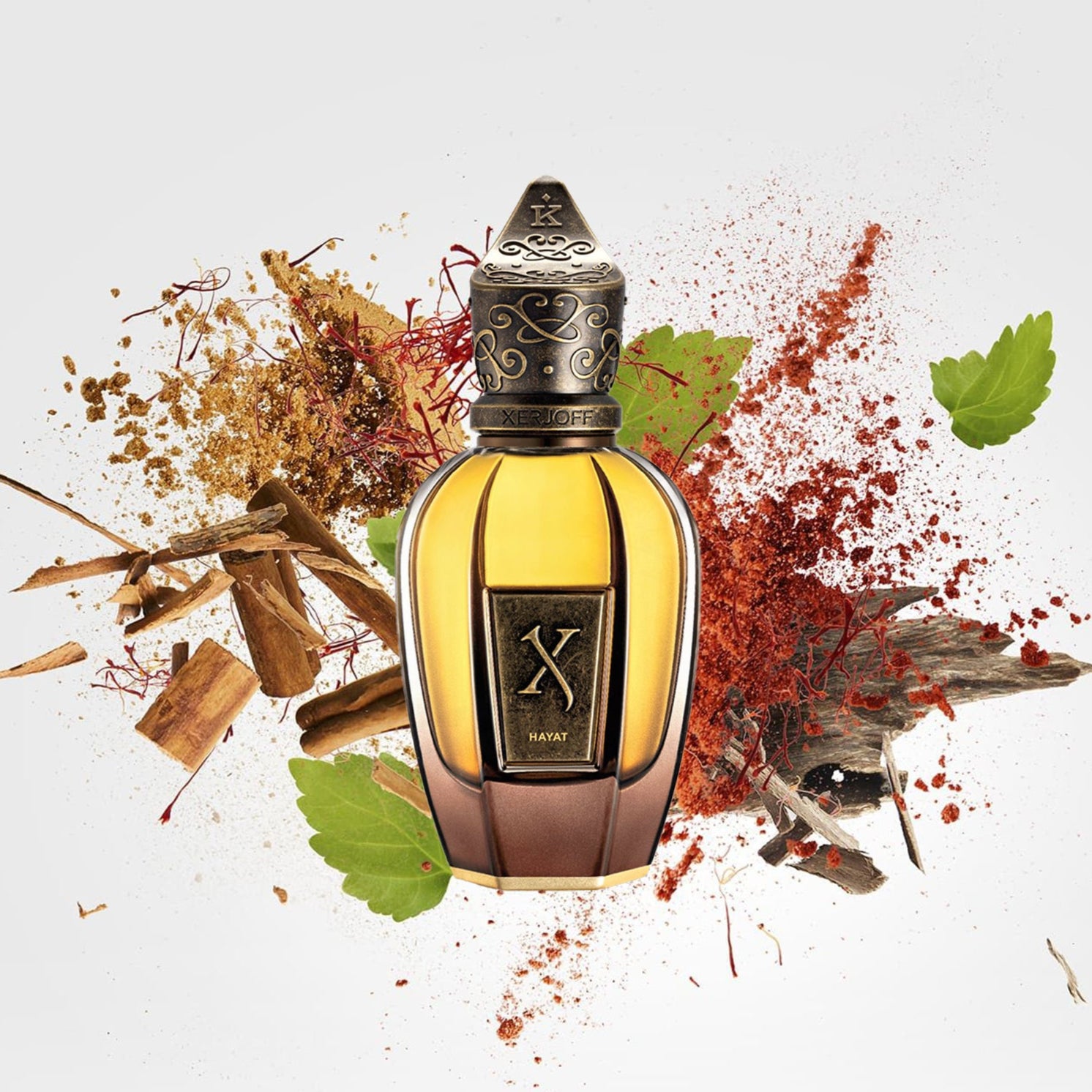 تتميز مجموعة Kemi Collection Hayat Parfum من Xerjoff برائحة تناغم فاخر من الخشب والتوابل من زهرة النيرولي الطازجة والهيل الدافئ، متوازنة مع خشب الأرز الغني والعود العميق، مما يجسد جوهر الحياة والتراث الغني للعطور في الشرق الأوسط.