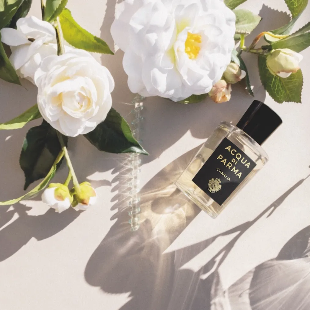 Acqua Di Parma Camelia EDP smells like a blend of delicate camellia, zesty citrus, and hints of warm musk and benzoin resin.