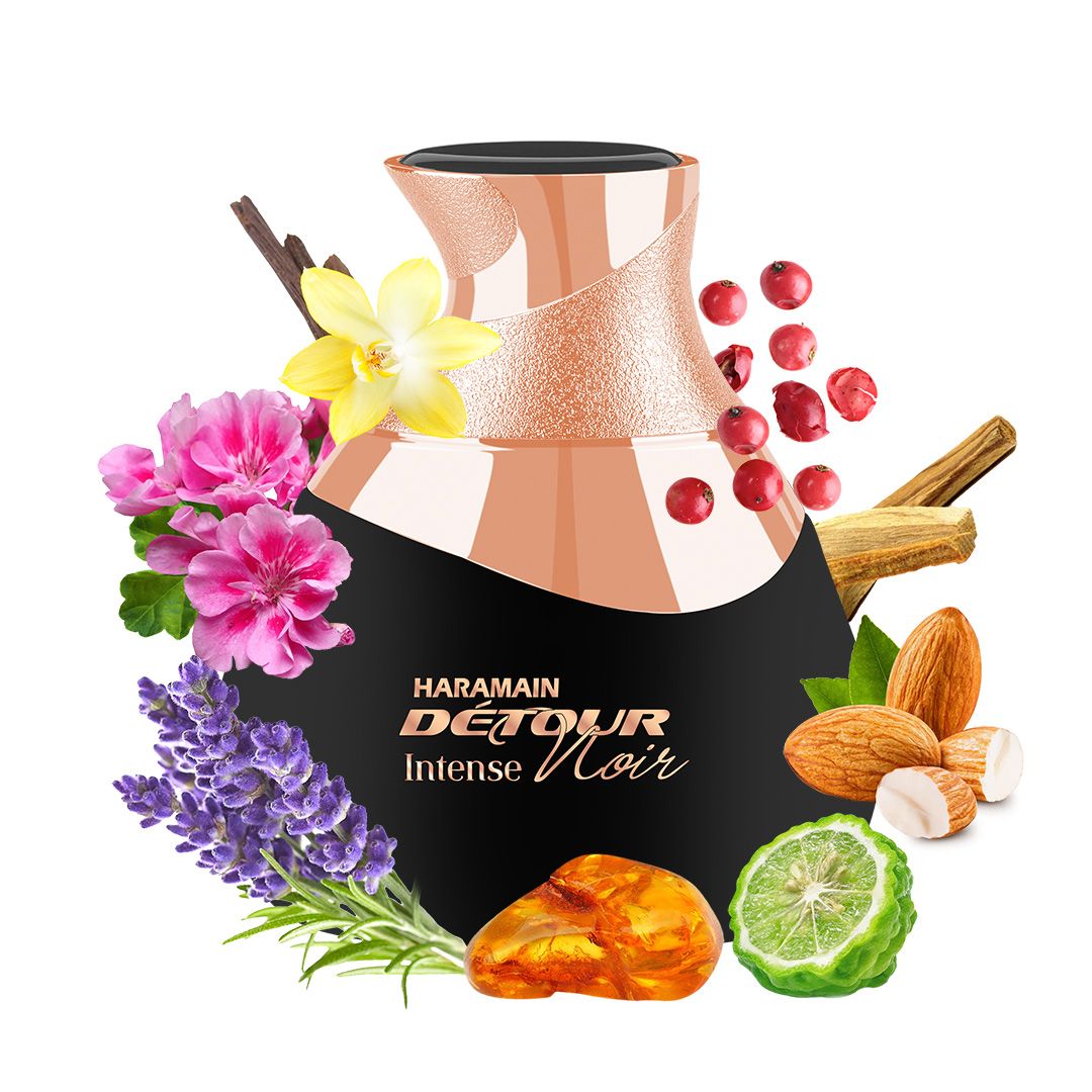Al Haramain Detour Noir Intense EDP has a rich and captivating scent that blends warm spices, sweet vanilla, and deep wood notes, creating a bold and alluring fragrance perfect for any occasion.