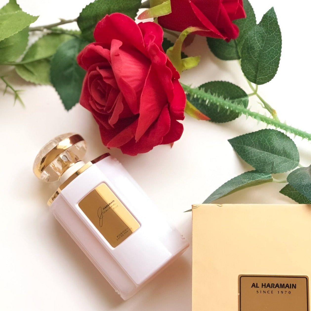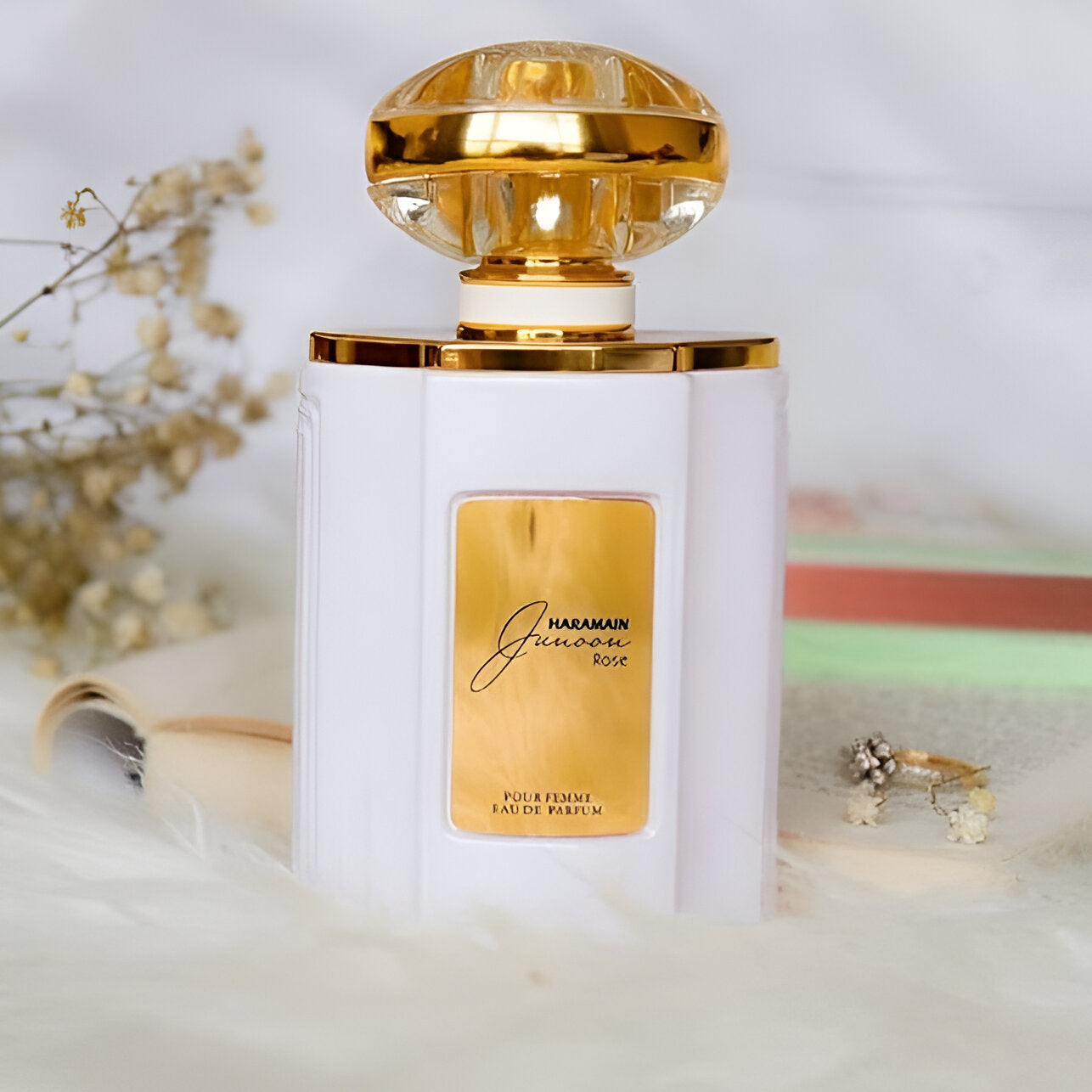 Discover the enchanting allure of Al Haramain Junoon Rose EDP, a symphony of oriental floral scents designed to captivate and enthrall.