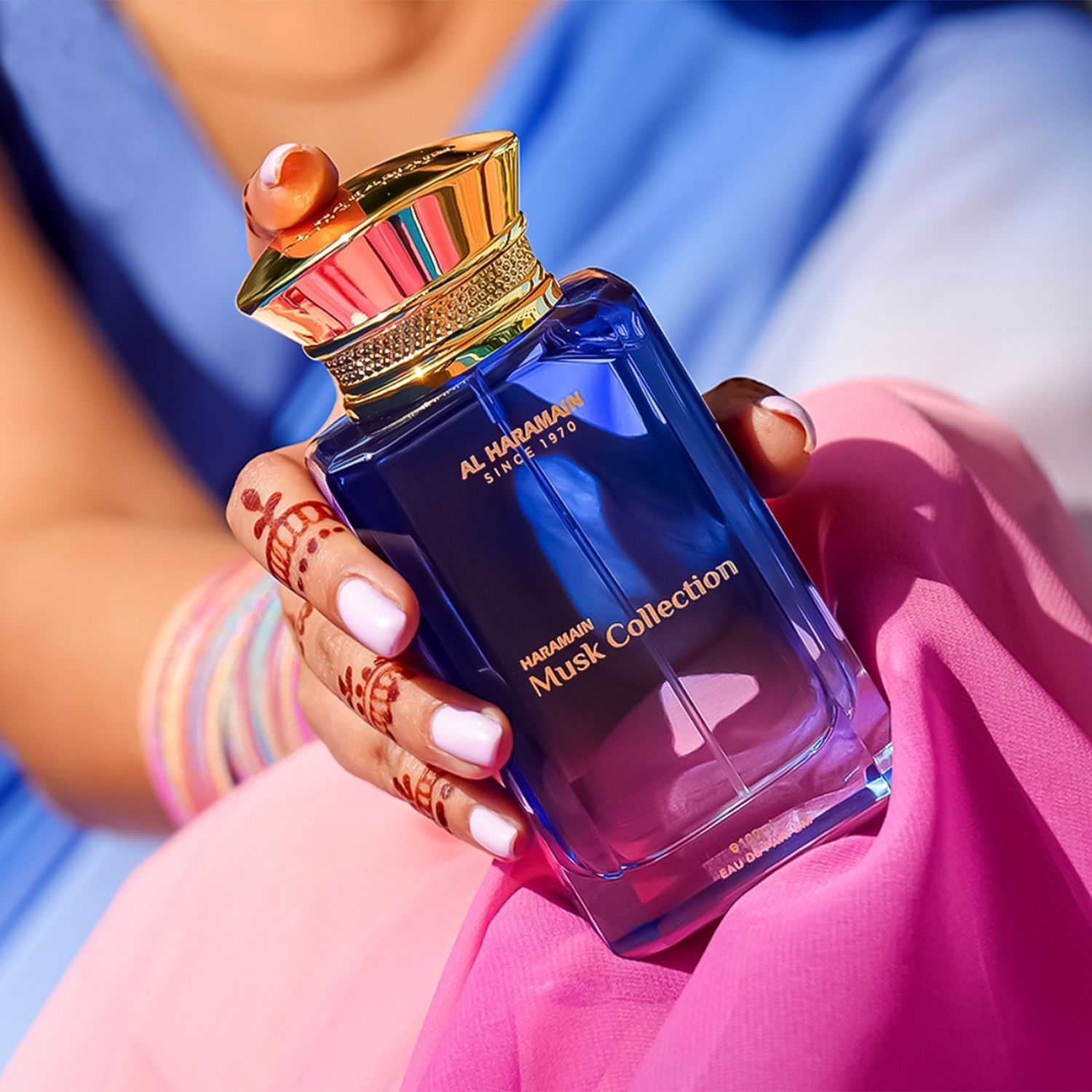 Al Haramain Musk Collection EDP smells like a beautiful blend of fresh lemon and mint, warm oud and amber, with delicate floral hints, creating a long-lasting and elegant fragrance for everyone to enjoy.