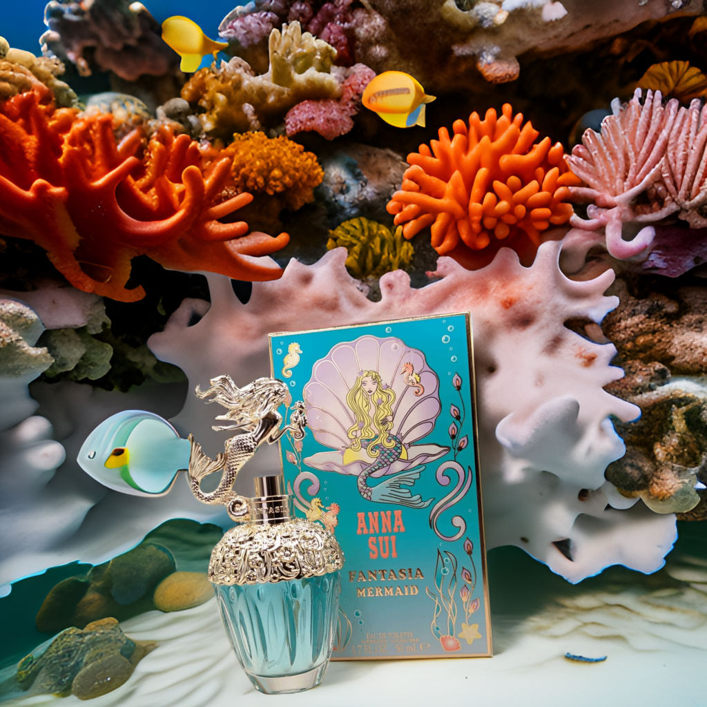 Dive into the depths of a scent that captures the playful spirit of the ocean, blending the freshness of citrus with the romance of jasmine and peony. This captivating duo from Anna Sui is designed to enchant your senses and leave a mystical trail of woody fragrances, creating an experience as mesmerizing as a mermaid's call.