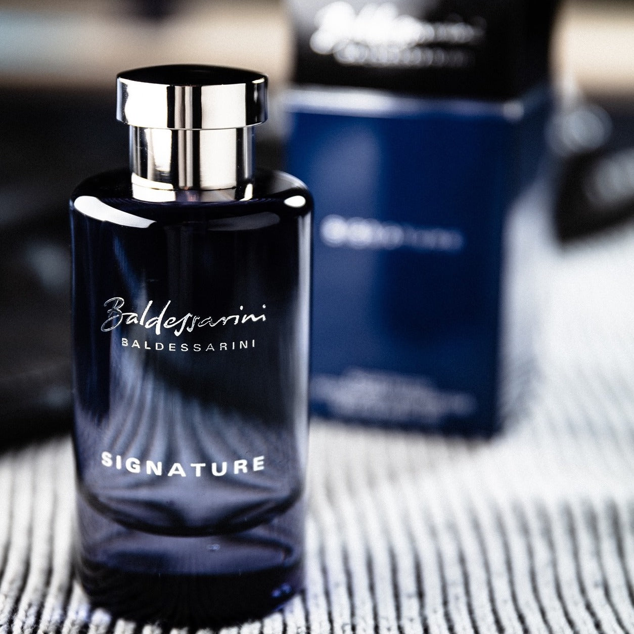 Baldessarini Signature EDT smells of rich spices and fresh citrus notes, crafted for a bold, masculine scent.