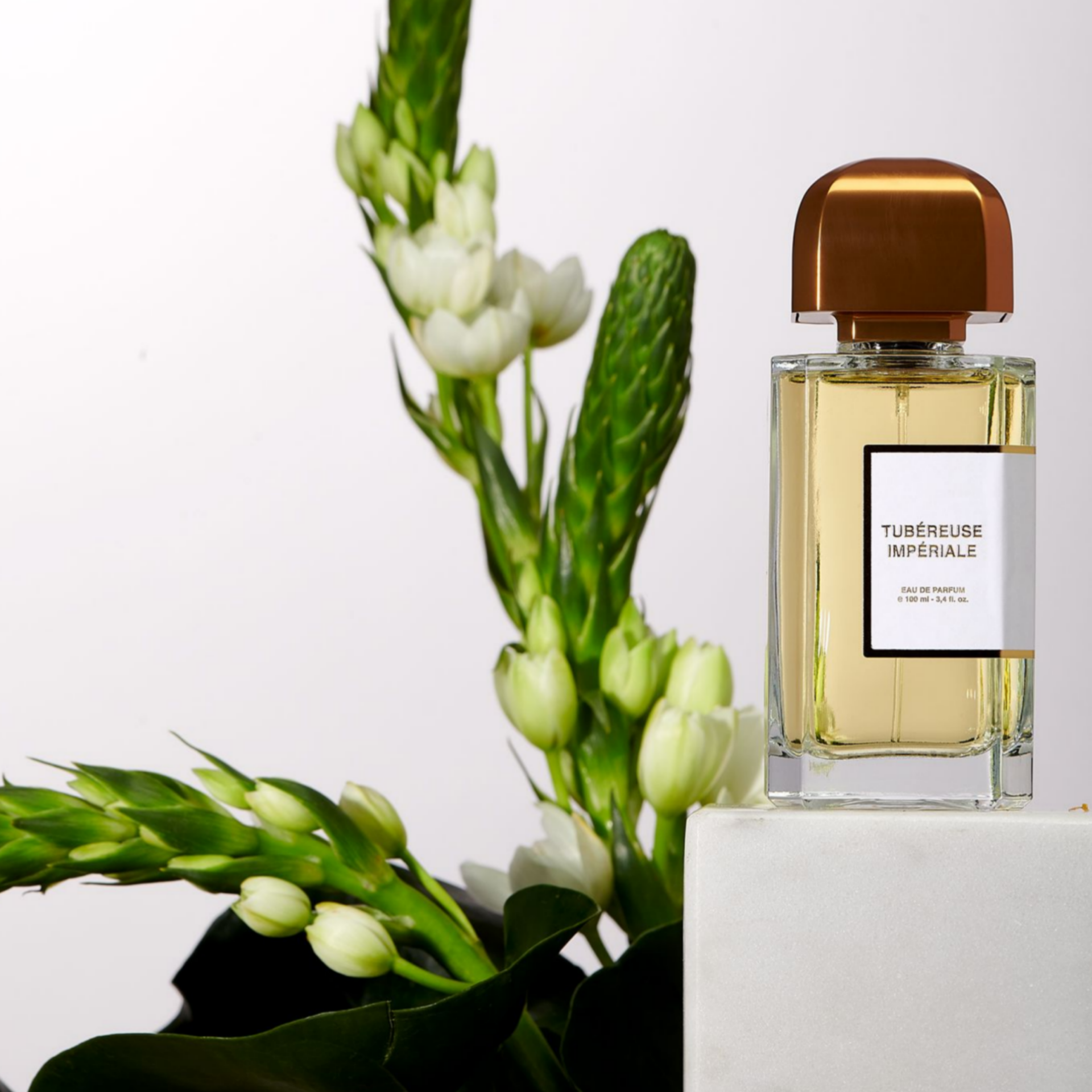 BDK Parfums Tubereuse Imperiale EDP has a luxurious amber scent with warm tonka bean, almond, and orange blossom, reminiscent of elegant Parisian style.