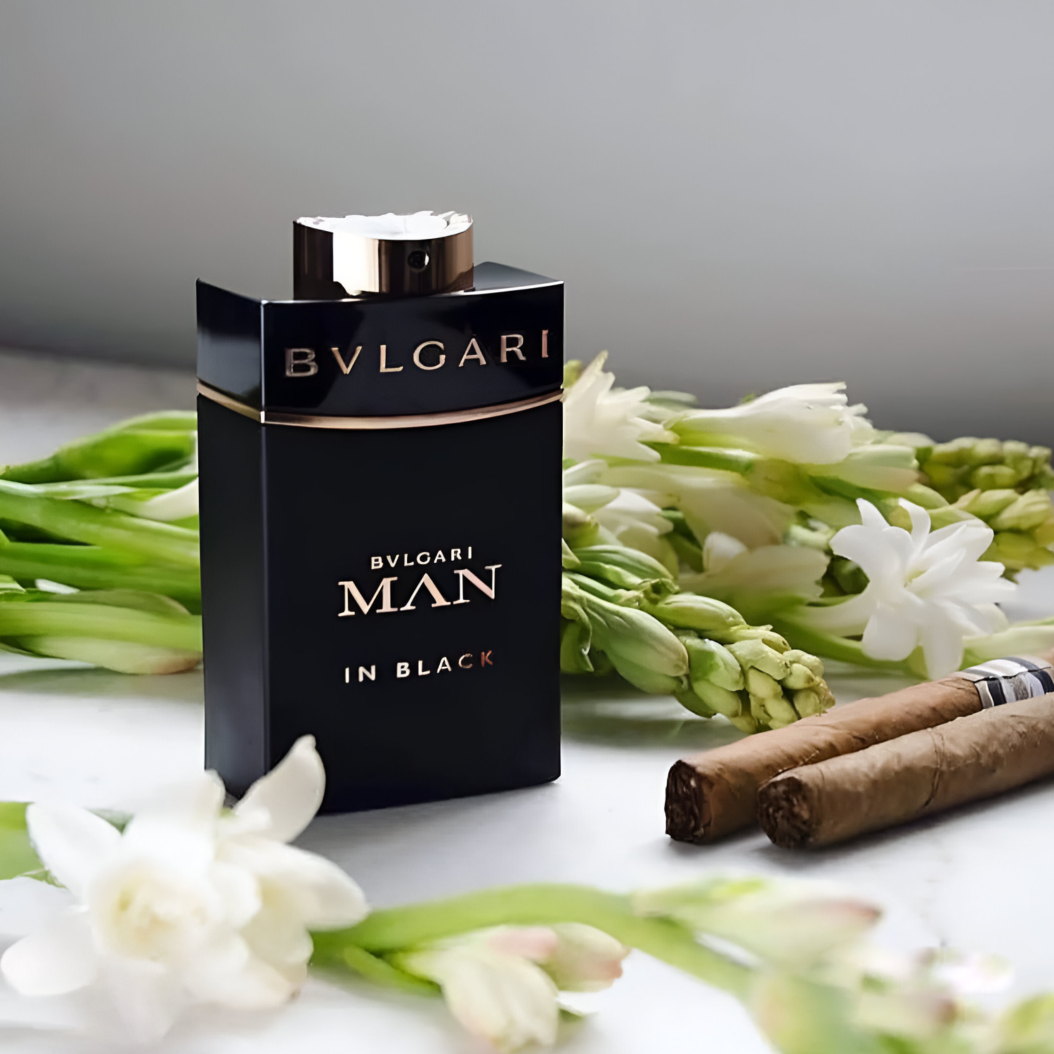 Bvlgari Man In Black Parfum smells like a bold blend of warm spices, rich rum, smooth tobacco, luxurious leather, and a hint of sweet tuberose, creating a captivating and sophisticated scent for the modern man.