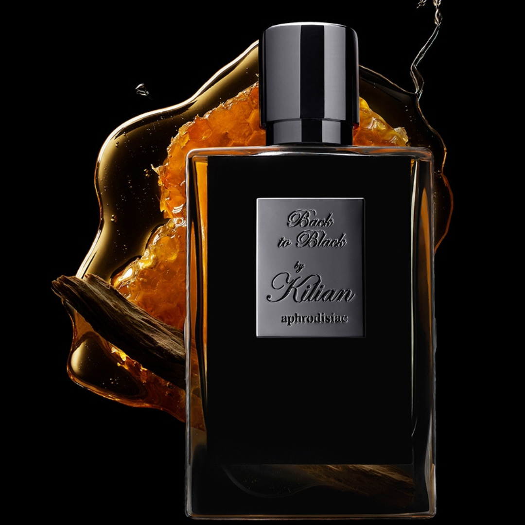 Kilian Back To Black EDP smells of sweet, spicy, and resinous notes with a hint of languid honey, evoking warmth and mystery.