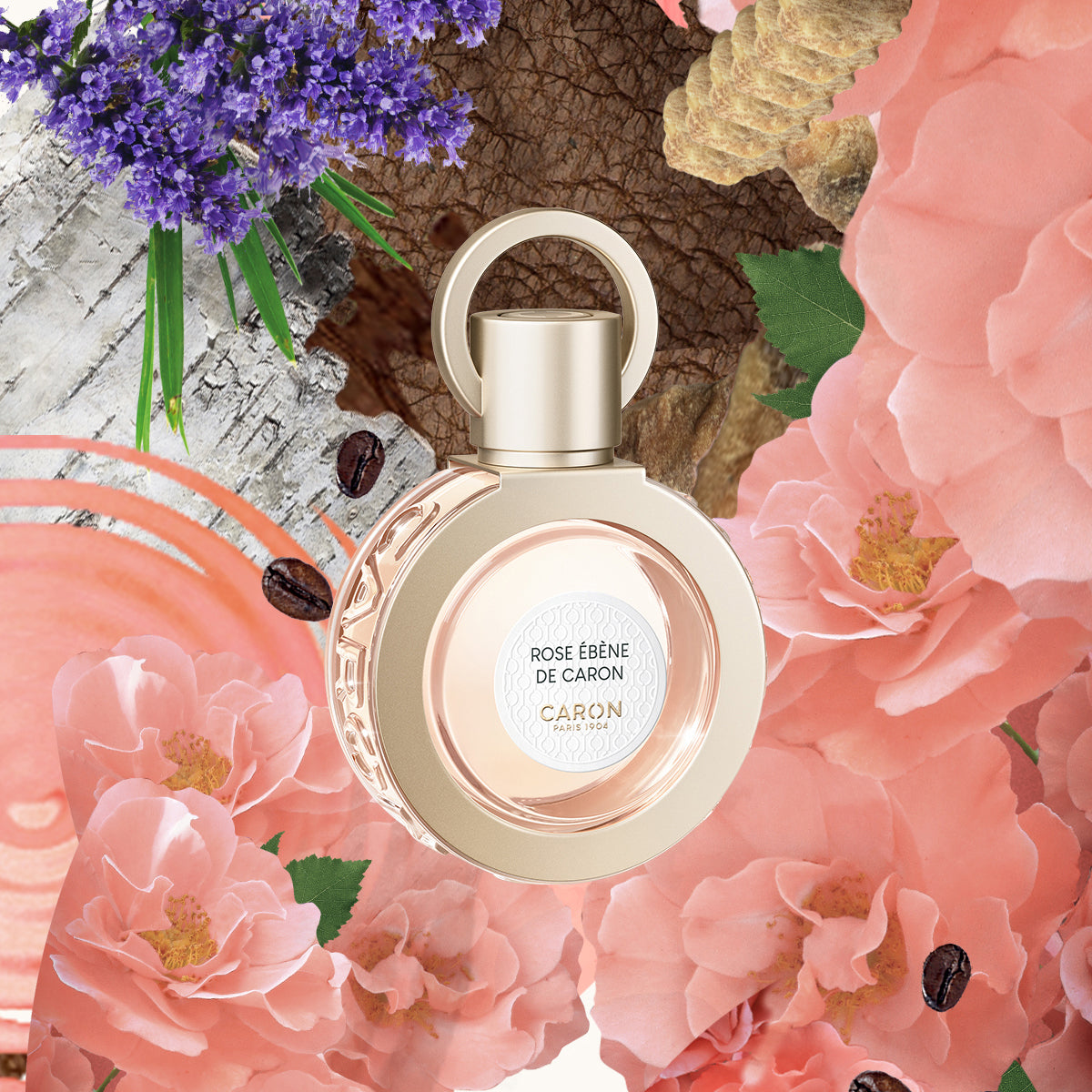Caron Rose Ebene De Caron EDP exudes a warm, spicy aroma with a heart of Damask rose and coffee, creating an intense and mysterious floral scent.