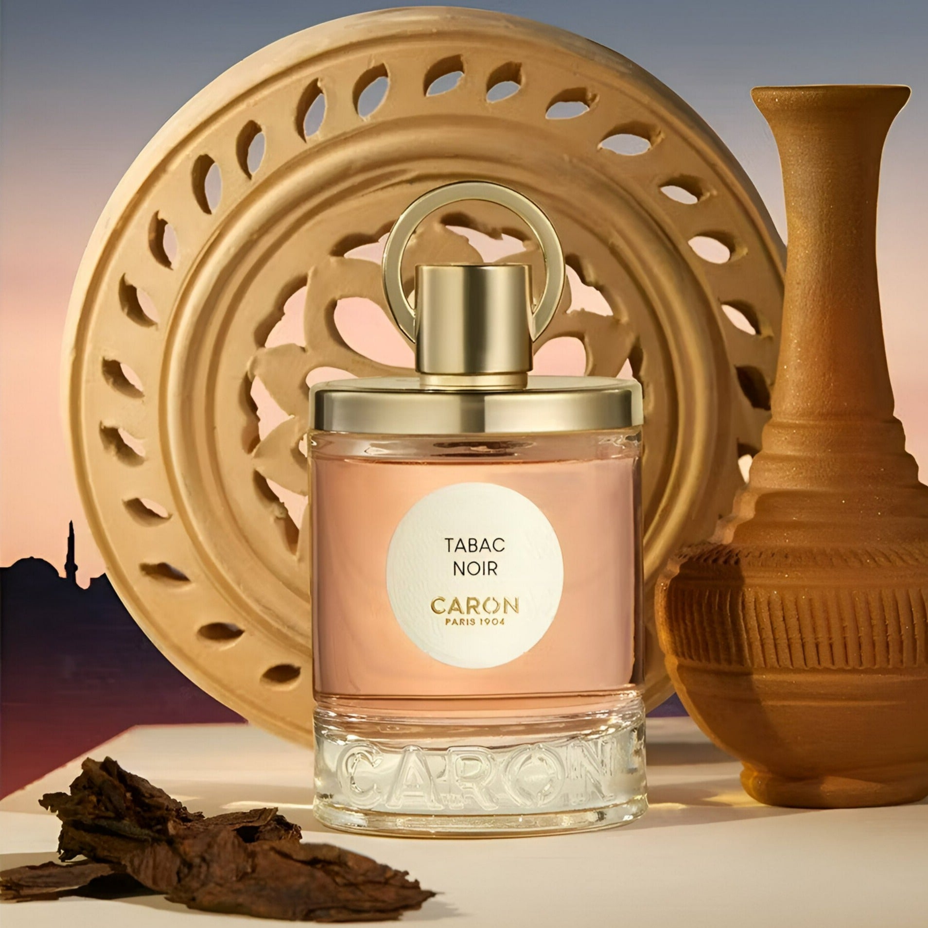 Caron Tabac Noir EDP exudes a warm, rich scent with notes of honey, leather, and patchouli, complemented by undertones of tonka beans, vanilla, and a hint of pepper for an elegant and sophisticated aroma.