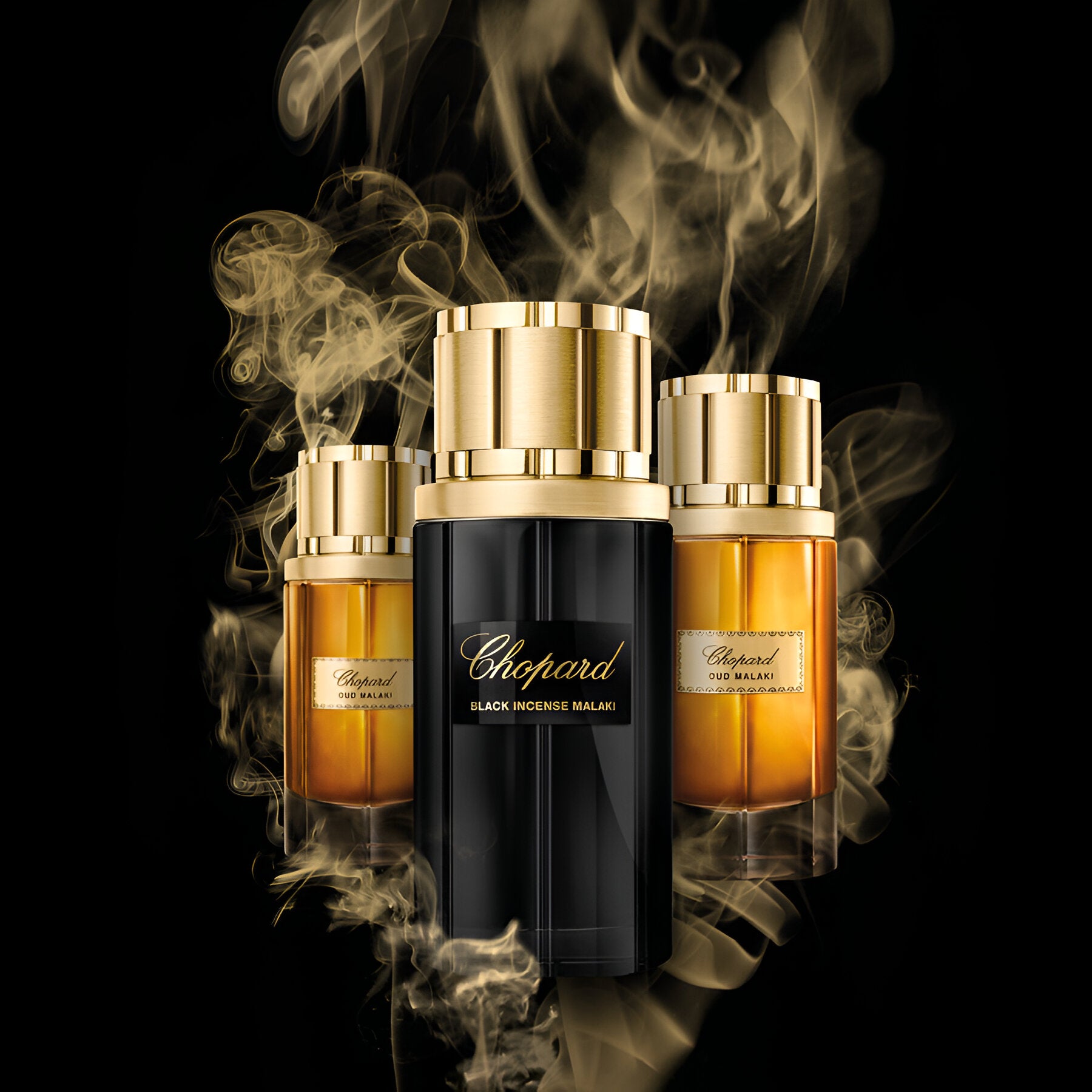 Chopard Oud Malaki EDP has a rich scent of oriental woods, leather, tobacco, and spices, reminiscent of an Arabian night.
