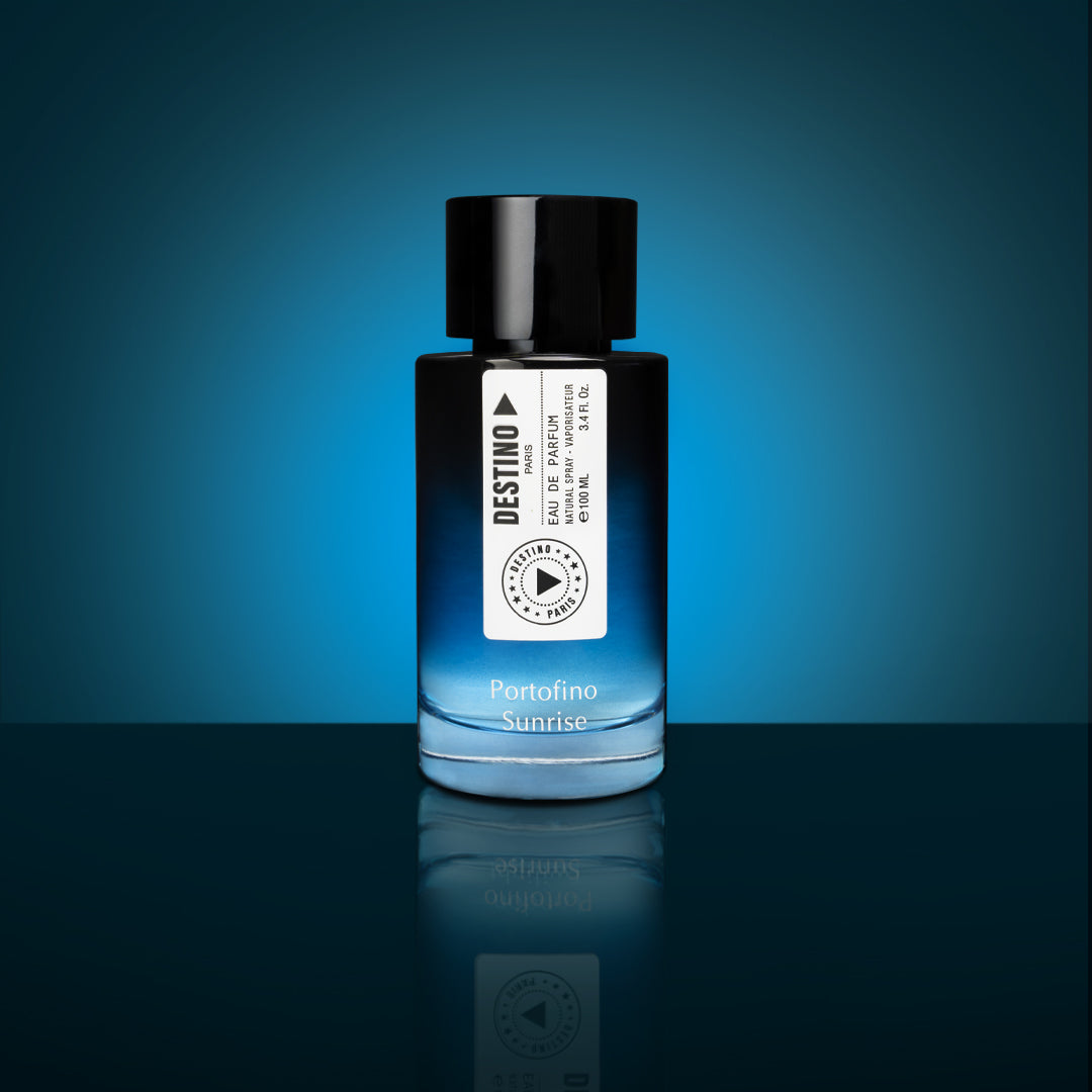 Destino Paris Portofino Sunrise EDP smells like an invigorating blend of citrus and aromatic herbs, capturing the essence of a sunrise over the Italian Riviera with notes of bergamot, lemon, juniper berry, lavender, and rosemary.