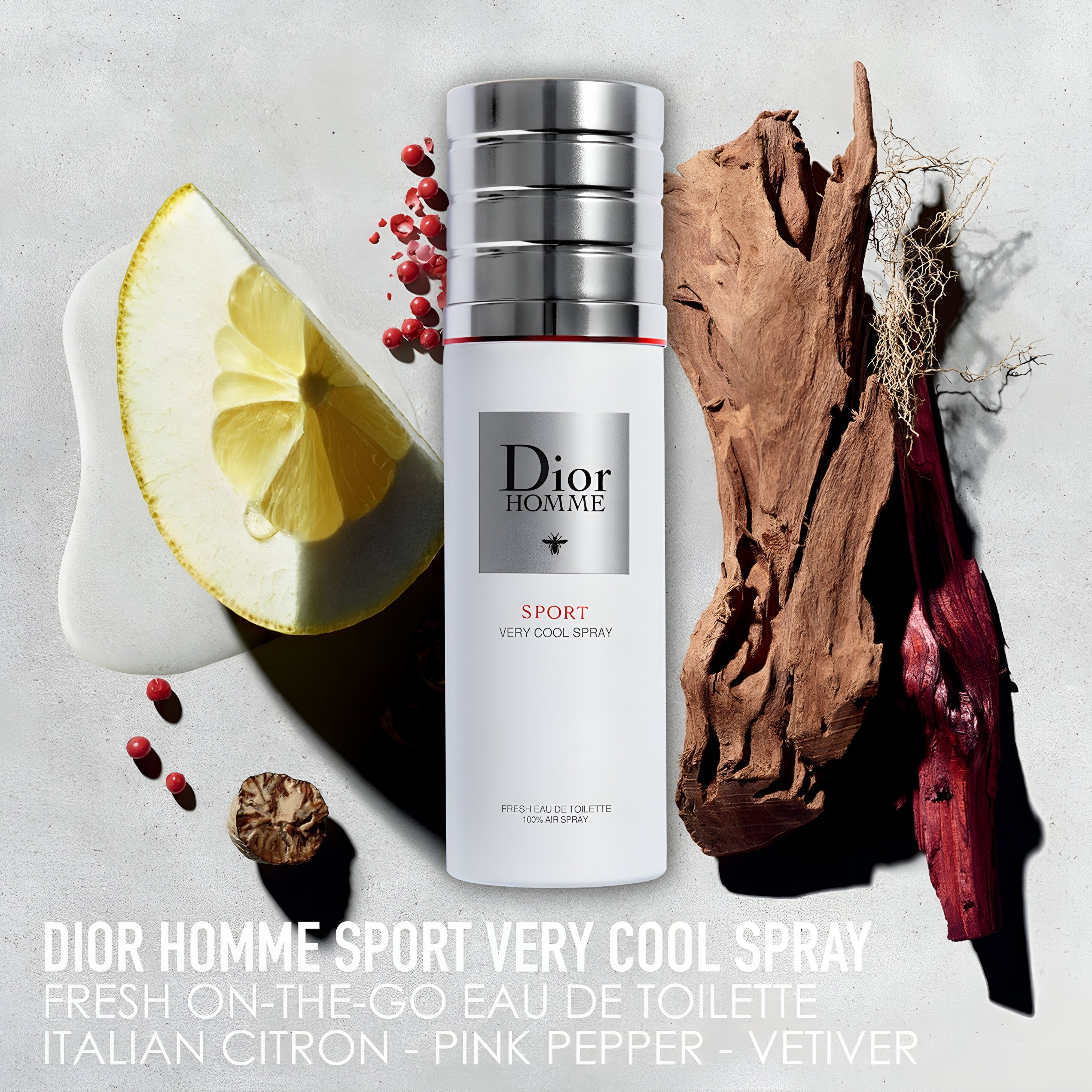Dior Homme Sport Very Cool Fresh EDT Deo Spray smells like a refreshing blend of fresh, fruity sweetness with woody and spicy undertones, capturing the essence of elegance and dynamism.
